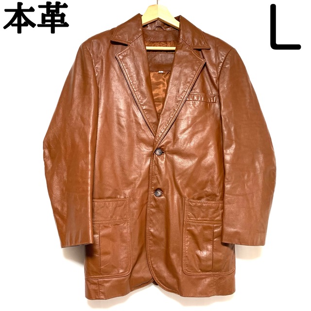 本革 肩パッド入り レザージャケット コート ブラウン 茶 メンズLサイズ