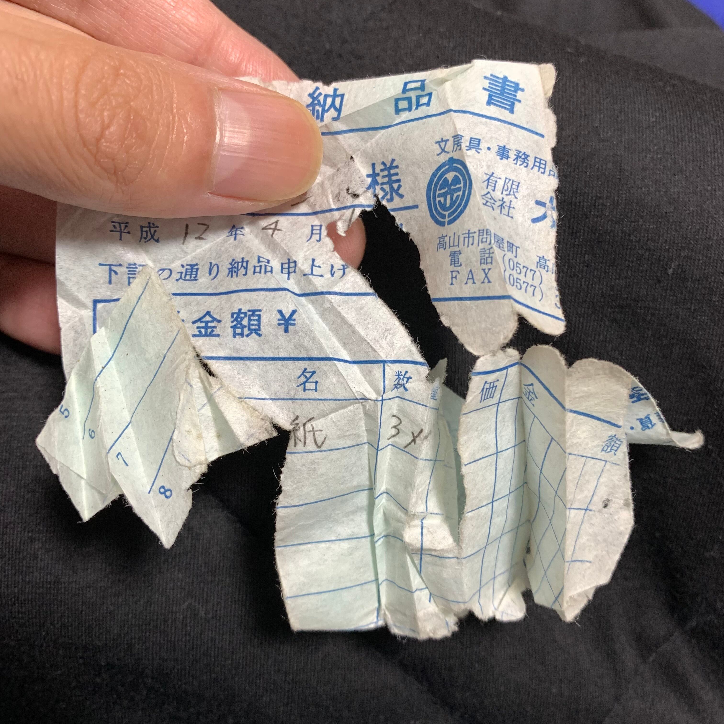 90年代〜2000年代の期間使用されていた白タグの製品ですが、ポケット内に前オーナーが入れたであろう平成12年(2000年)4月に切られた領収書が入れっぱなしになっていたため、1990年代後半の商品かと推測しています。