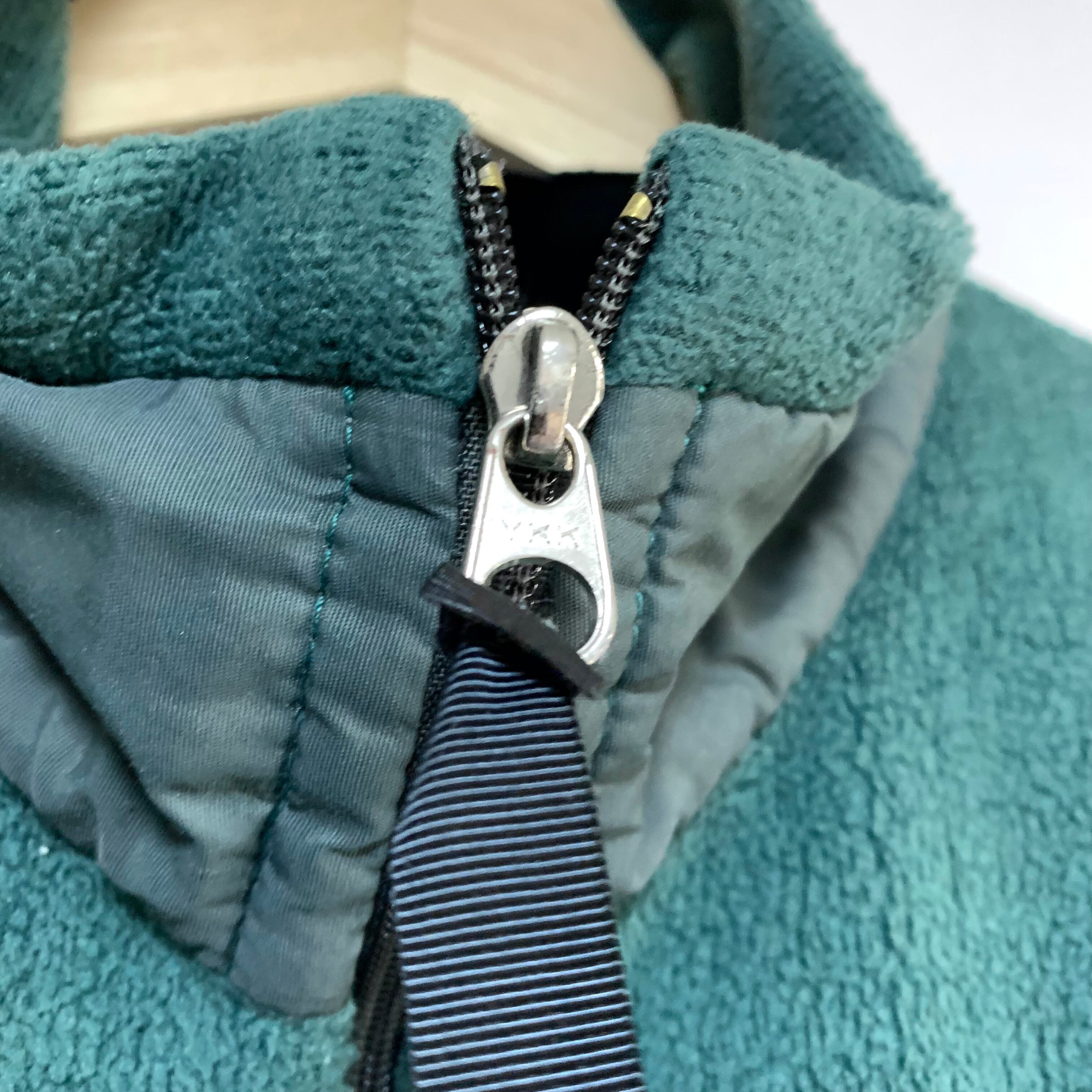 メインジッパーのスライダーと箱棒が欠損していました。パタゴニア製品に合うスライダーが無かったため、左ポケットのジッパーを外してメインジッパーに移植しています。箱棒は他社製品の物をGクリヤーにて接着しました。