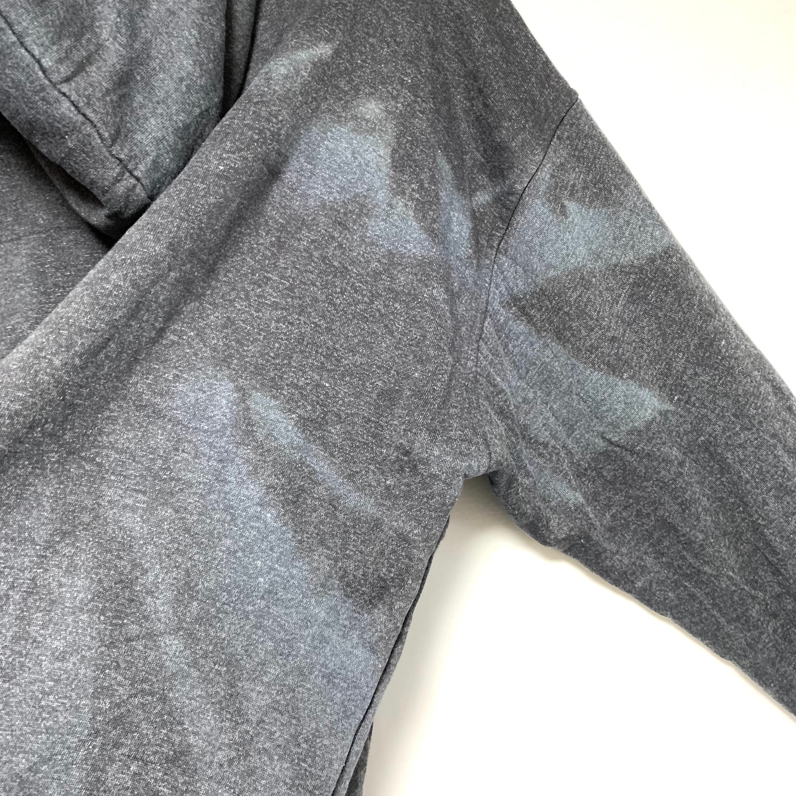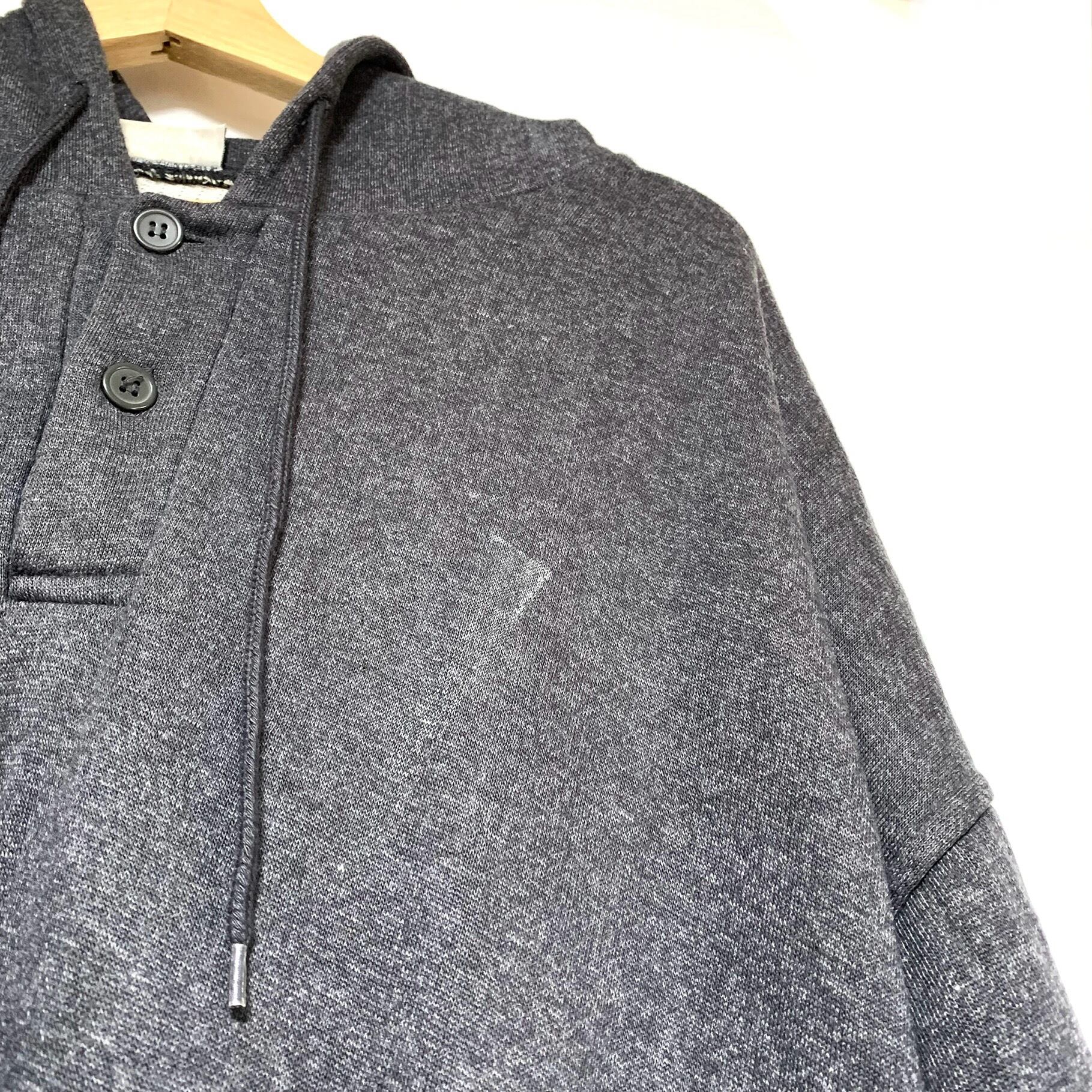 フードと前面左胸辺り、背面右側に大きく日焼けのような色褪せがあります。