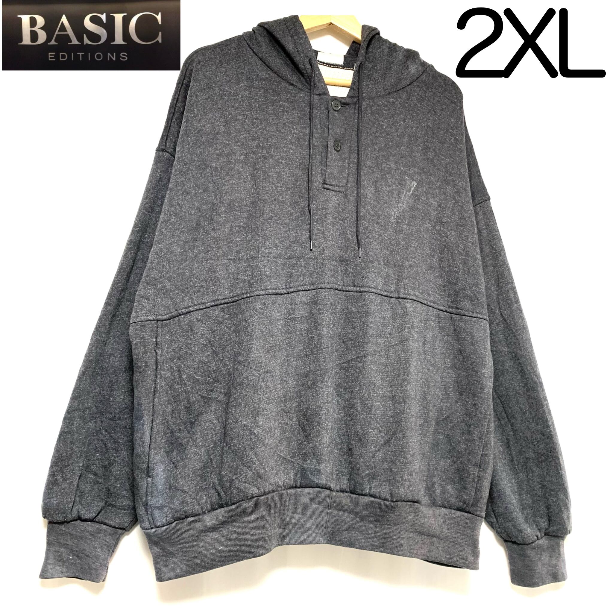 輸入古着 Basic Edition サーマルライニング スウェットパーカー ヘンリーネック 無地