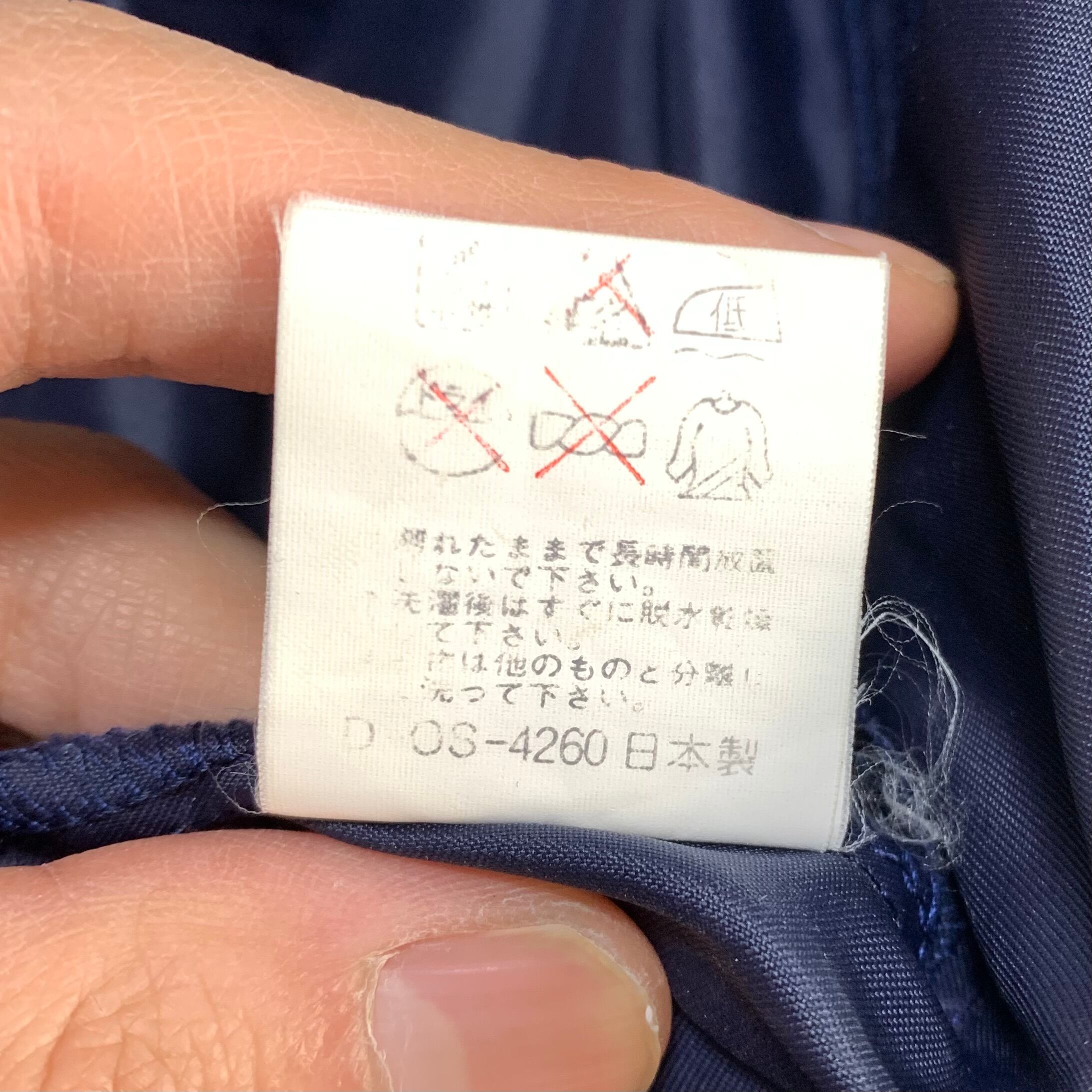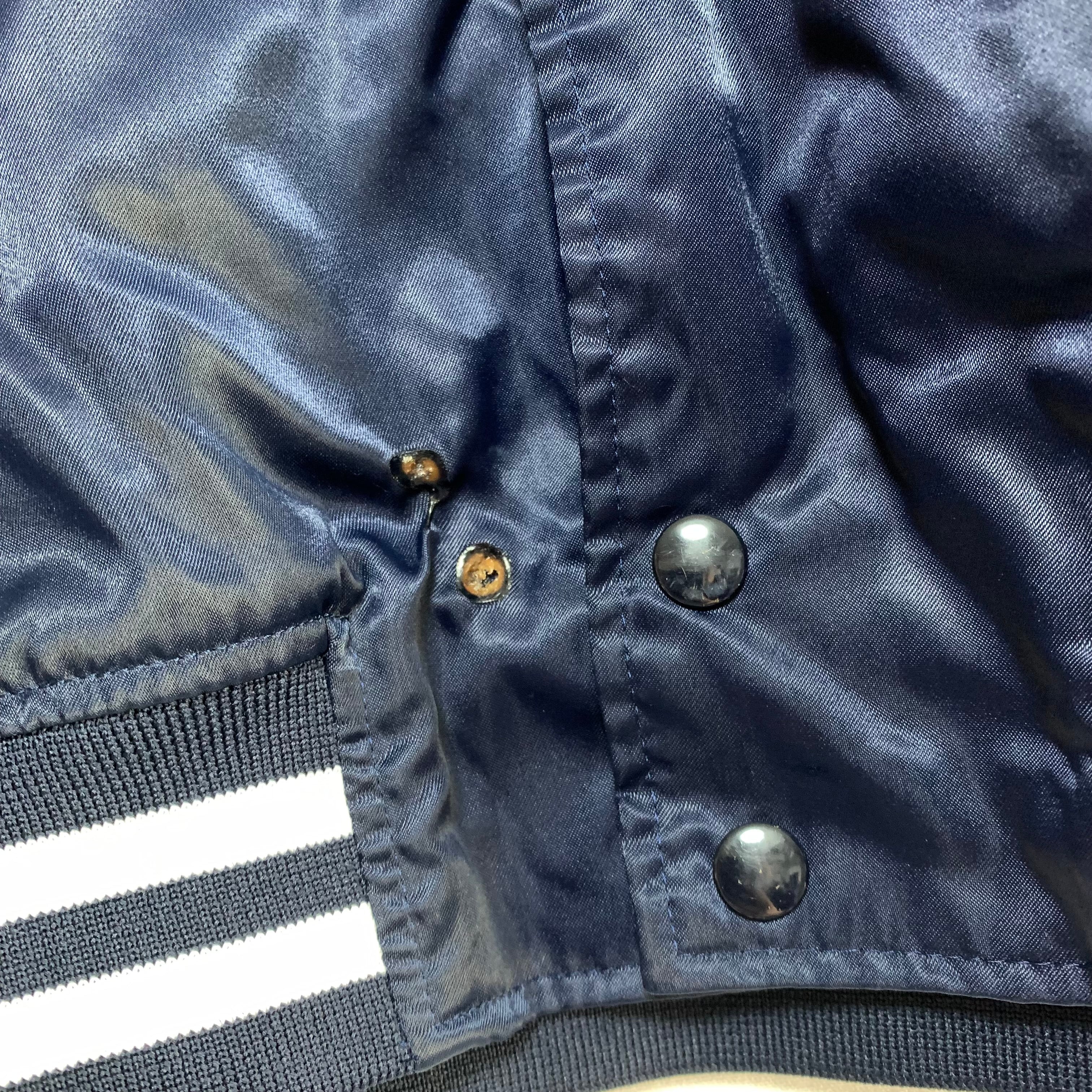 前面下部のスナップボタン右側に焦げ付きがあります。