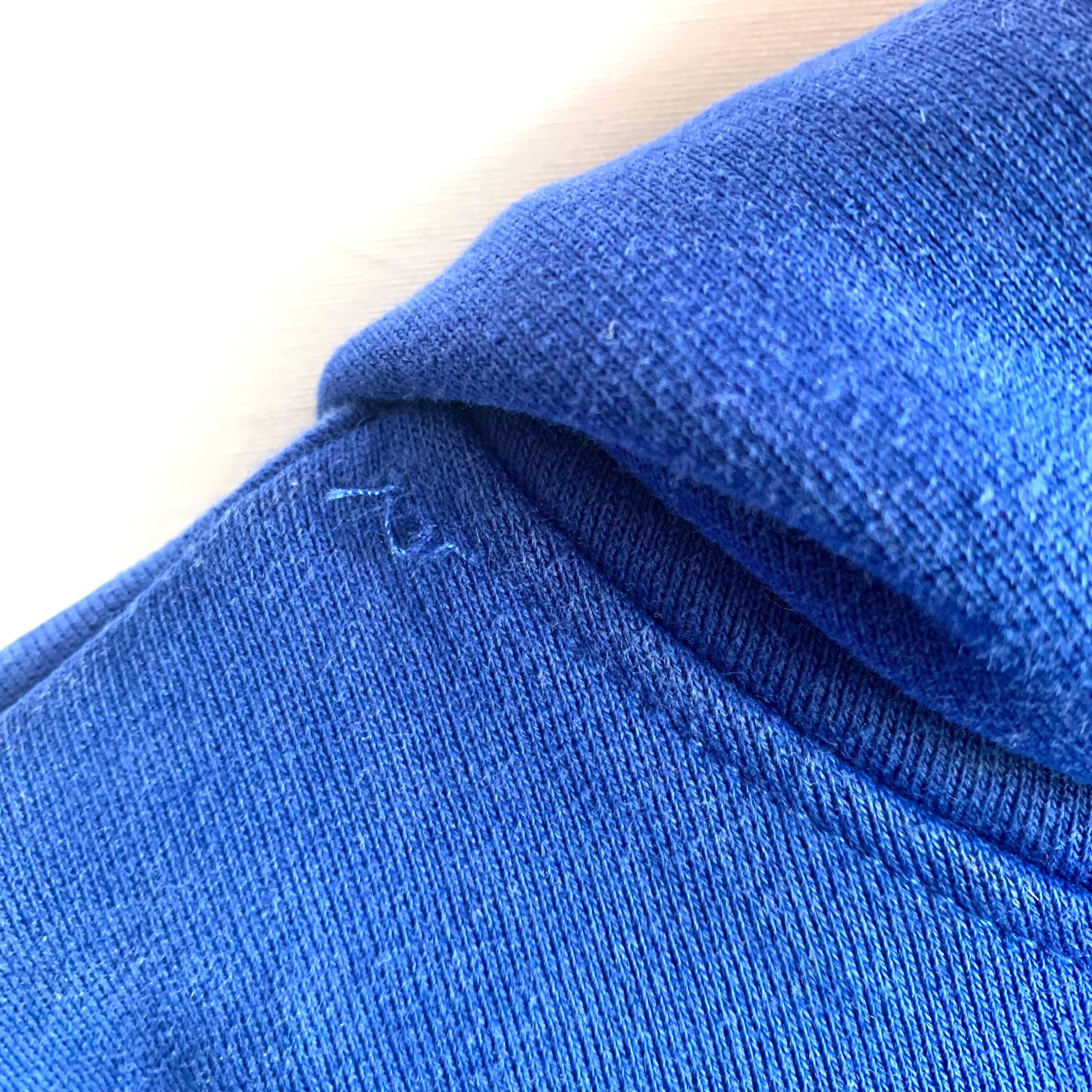 左脇ステッチ、首元右ステッチに抜けがあります。