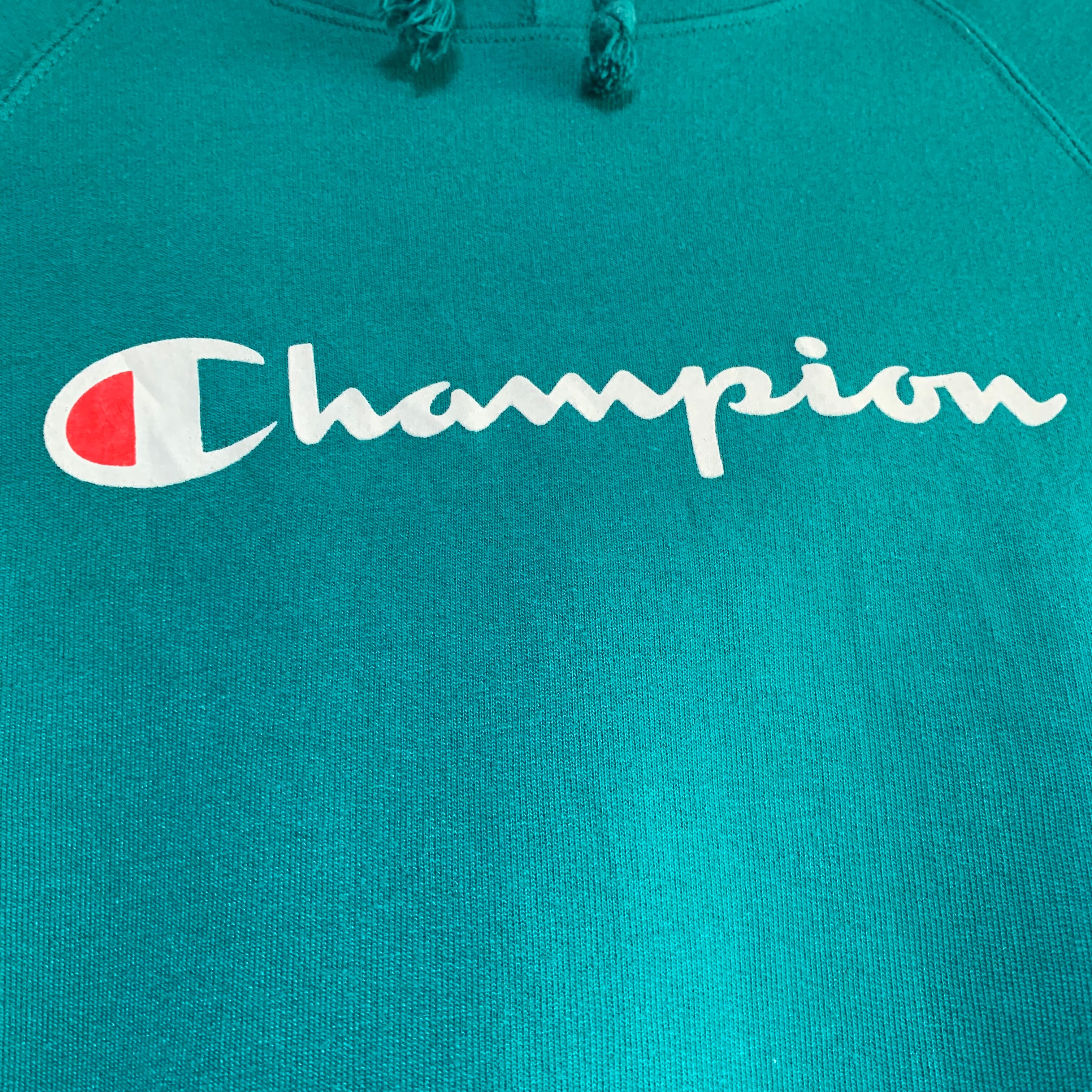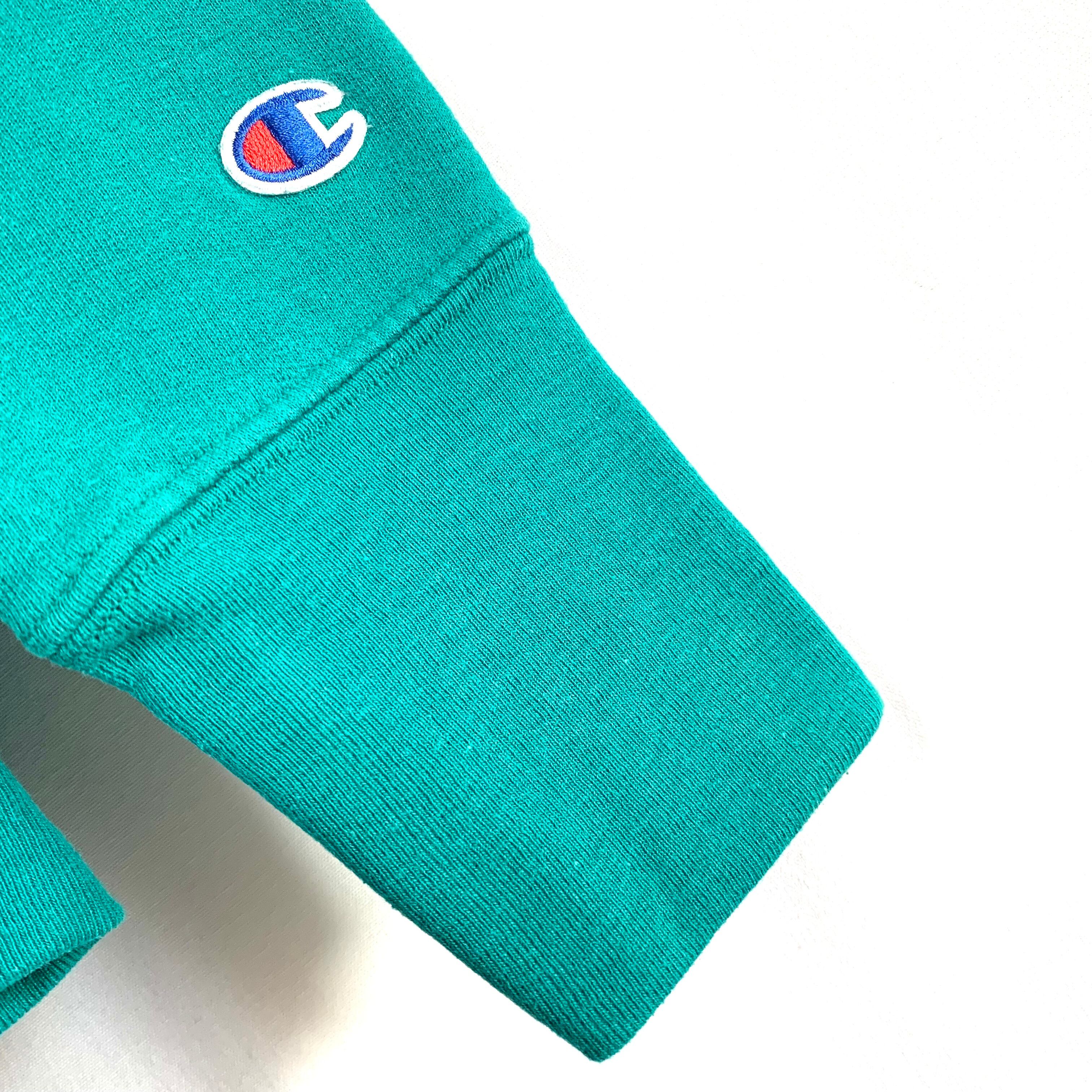 輸入古着 Champion チャンピオン ラグラン ハイネック パーカー エメラルドグリーン