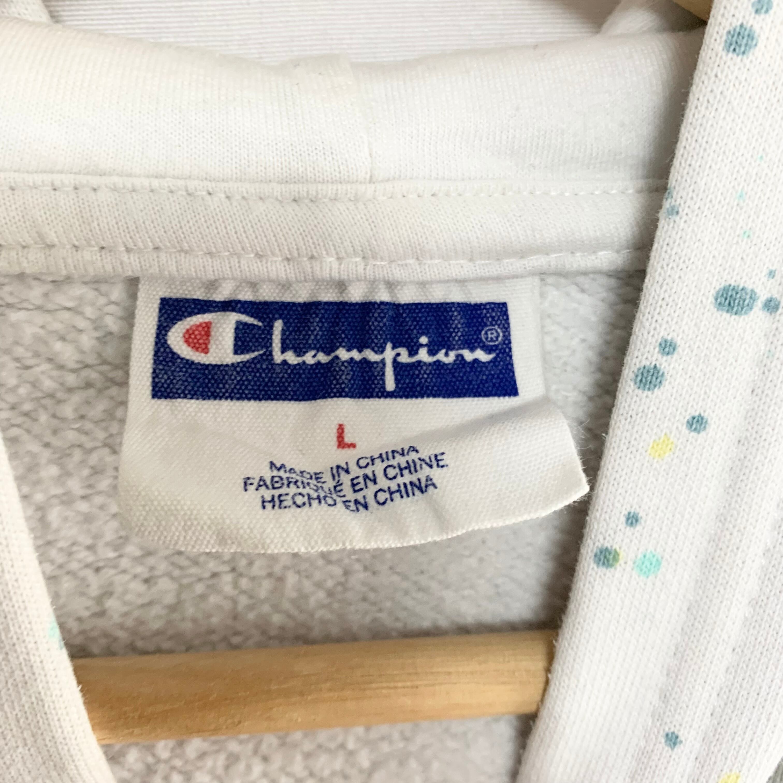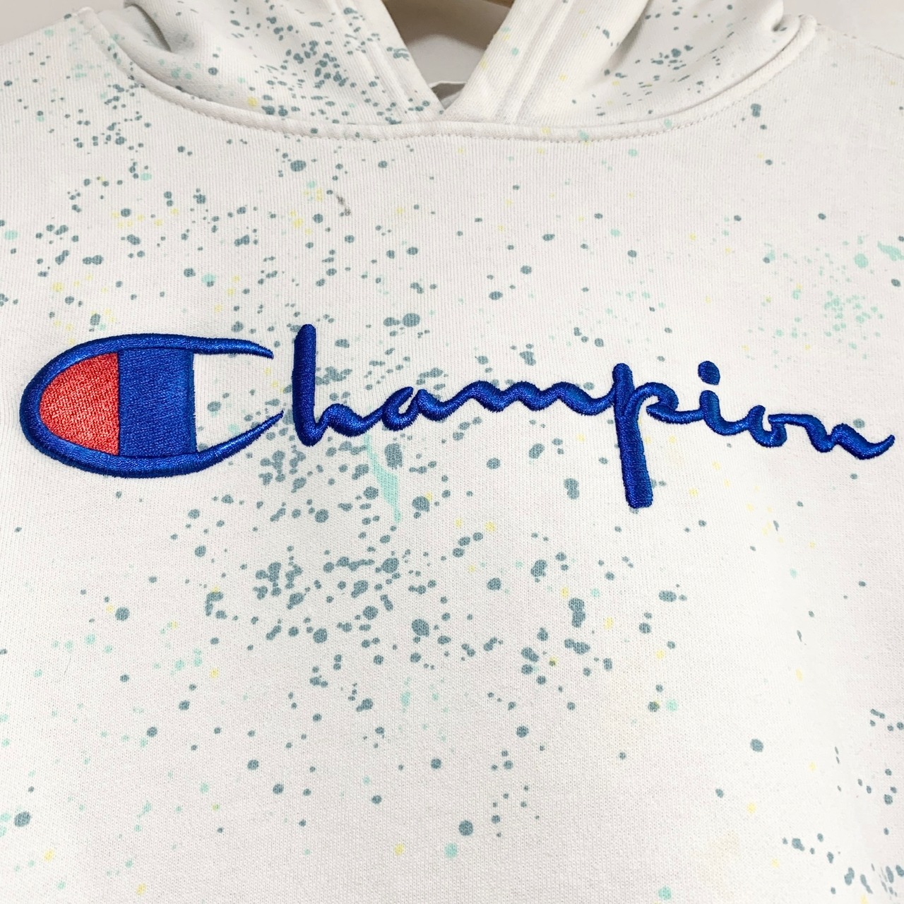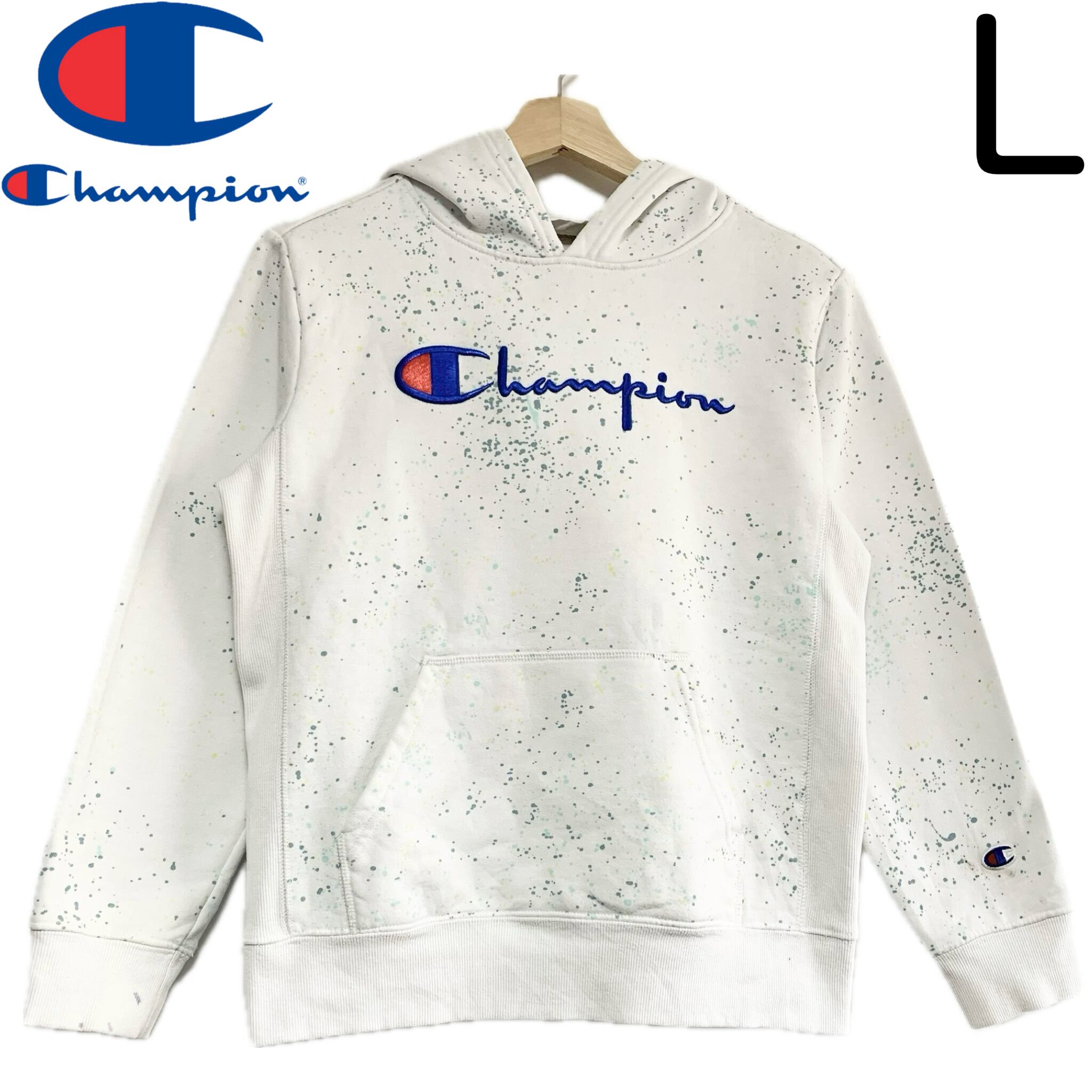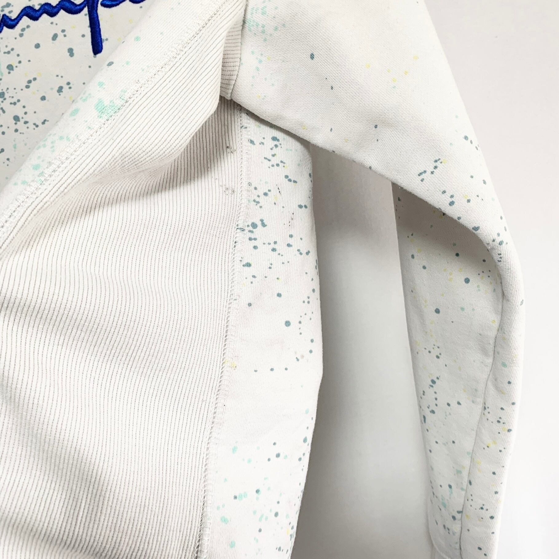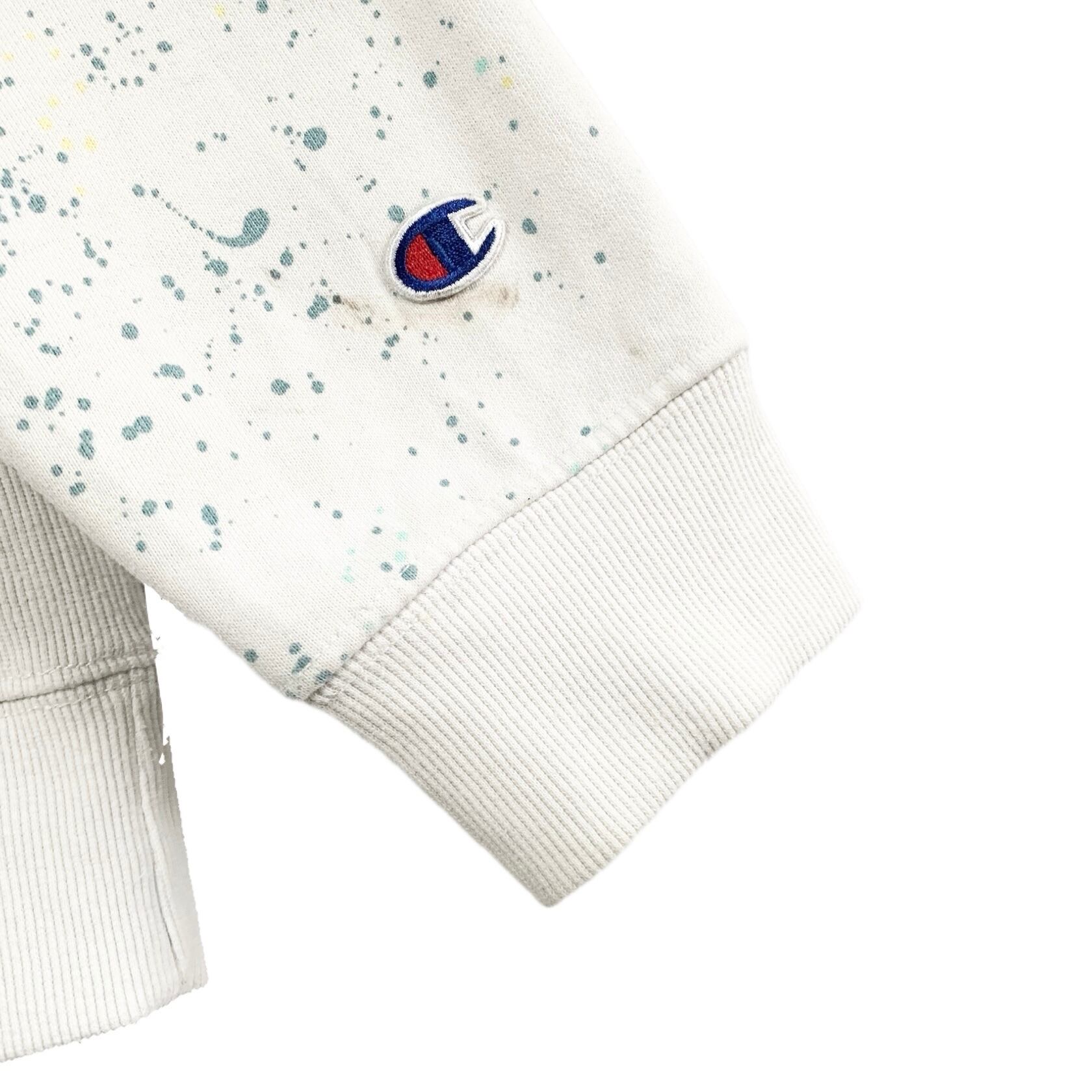 輸入古着 Champion チャンピオン スウェット パーカー ペンキスプラッシュ ホワイト
