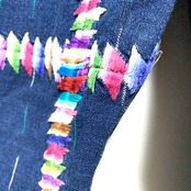 タグ類が一切付いていません。刺繍がおそらく手縫いである事と、セルビッジが左右非対称であることから、ハンドメイド品であると判断いたしました。