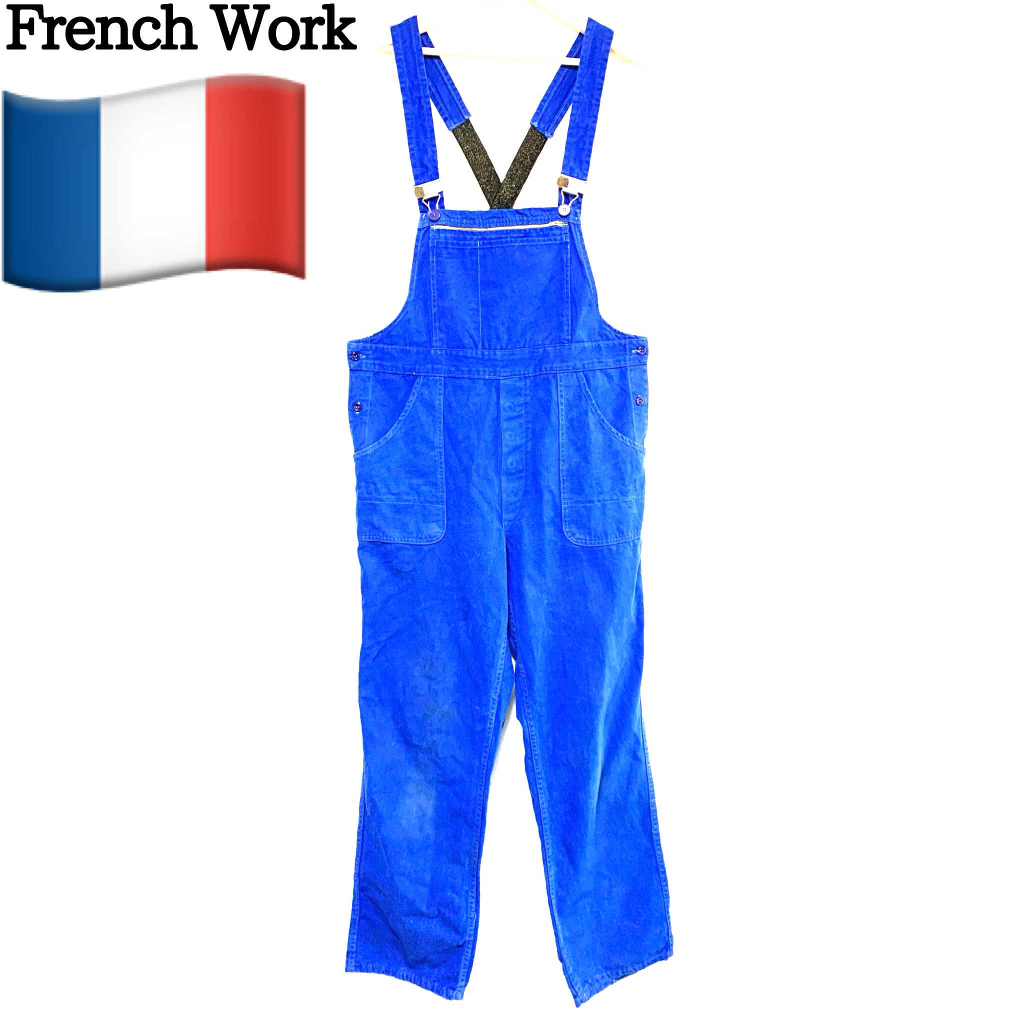 輸入古着 フレンチワーク オーバーオール コットンツイル ブルー