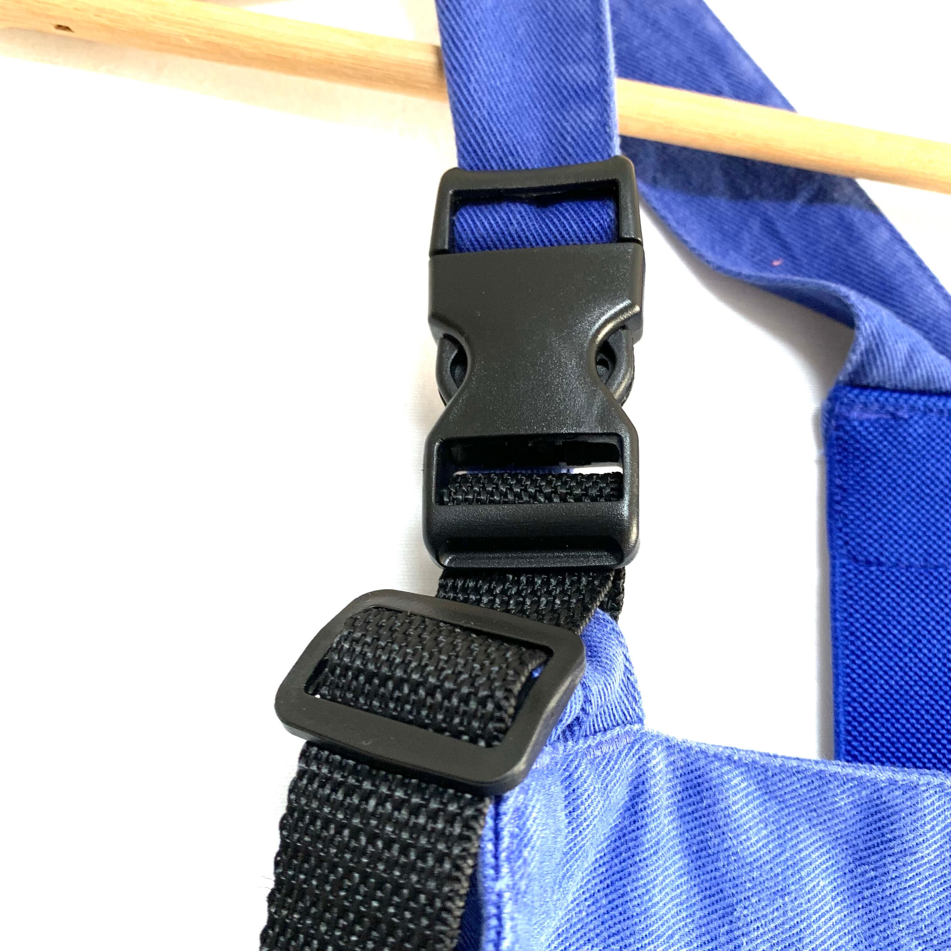 右側ストラップのバックルが壊れていたため、ダイソーで買ったバックルを急遽取り付けています。