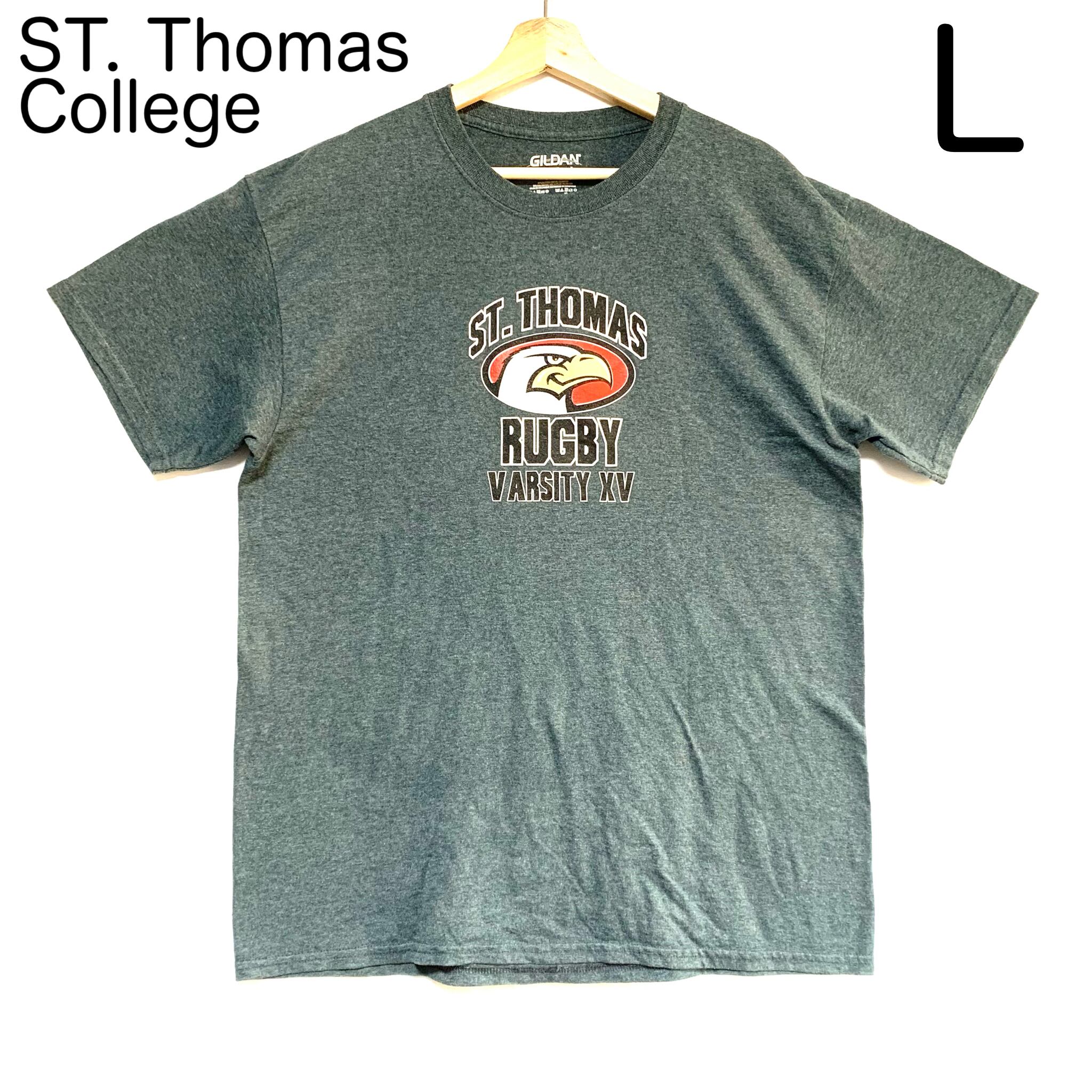 輸入古着 3段プリント カレッジTシャツ セントトーマス・オブ・カンタベリー大学ラグビー部