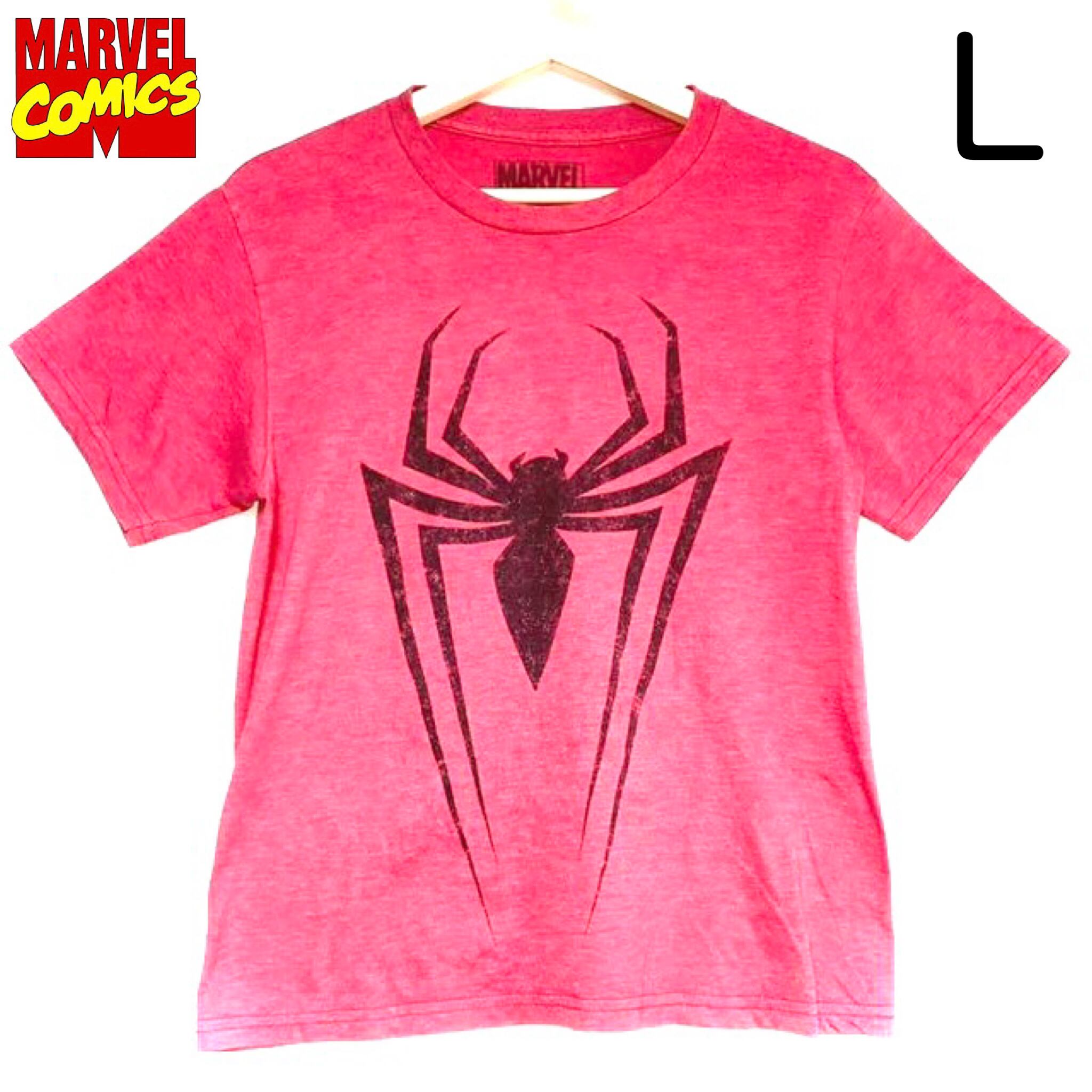 輸入古着 マーベル MARVEL スパイダーマン Spiderman 薄手Tシャツ ビッグロゴ デカロゴ レッド