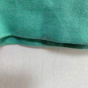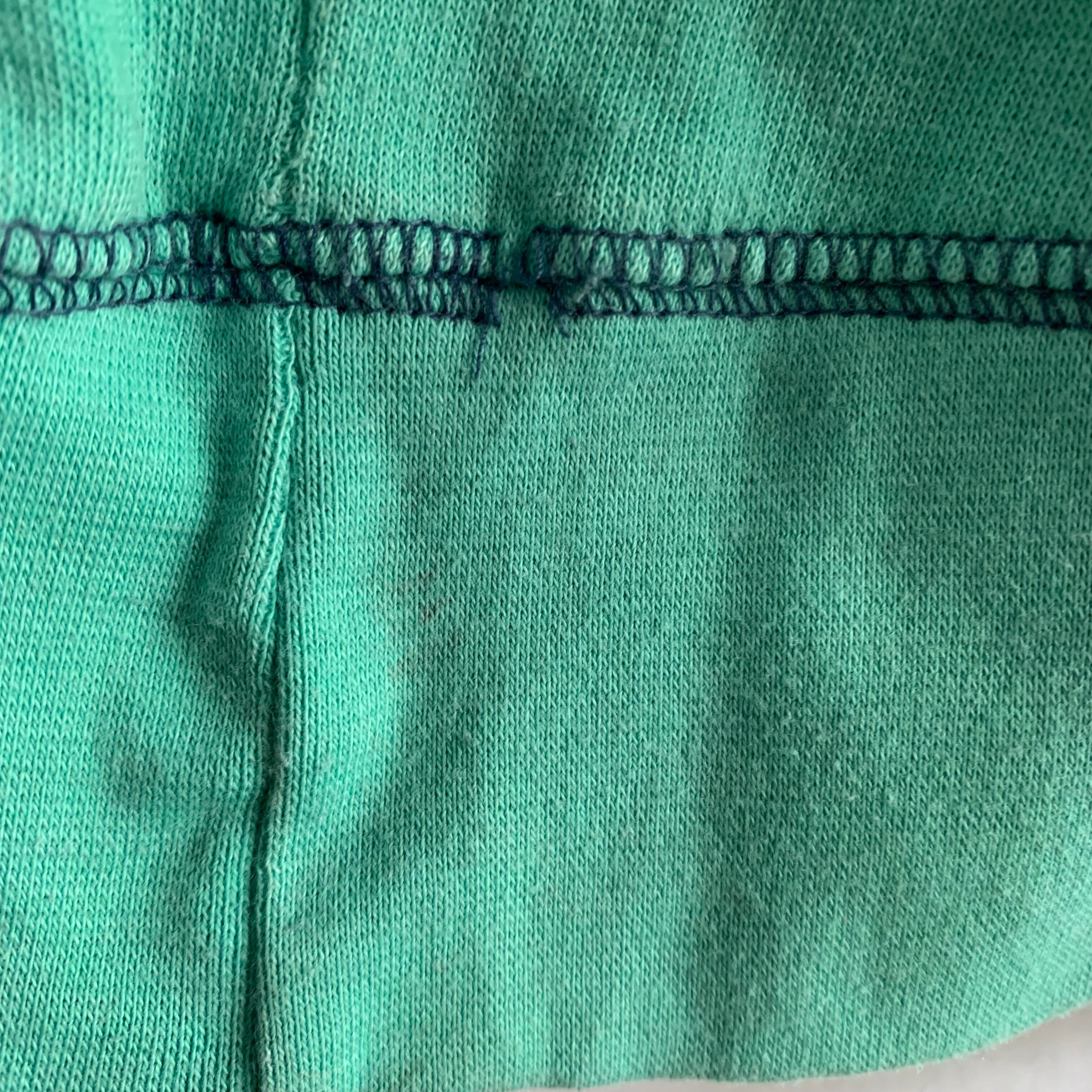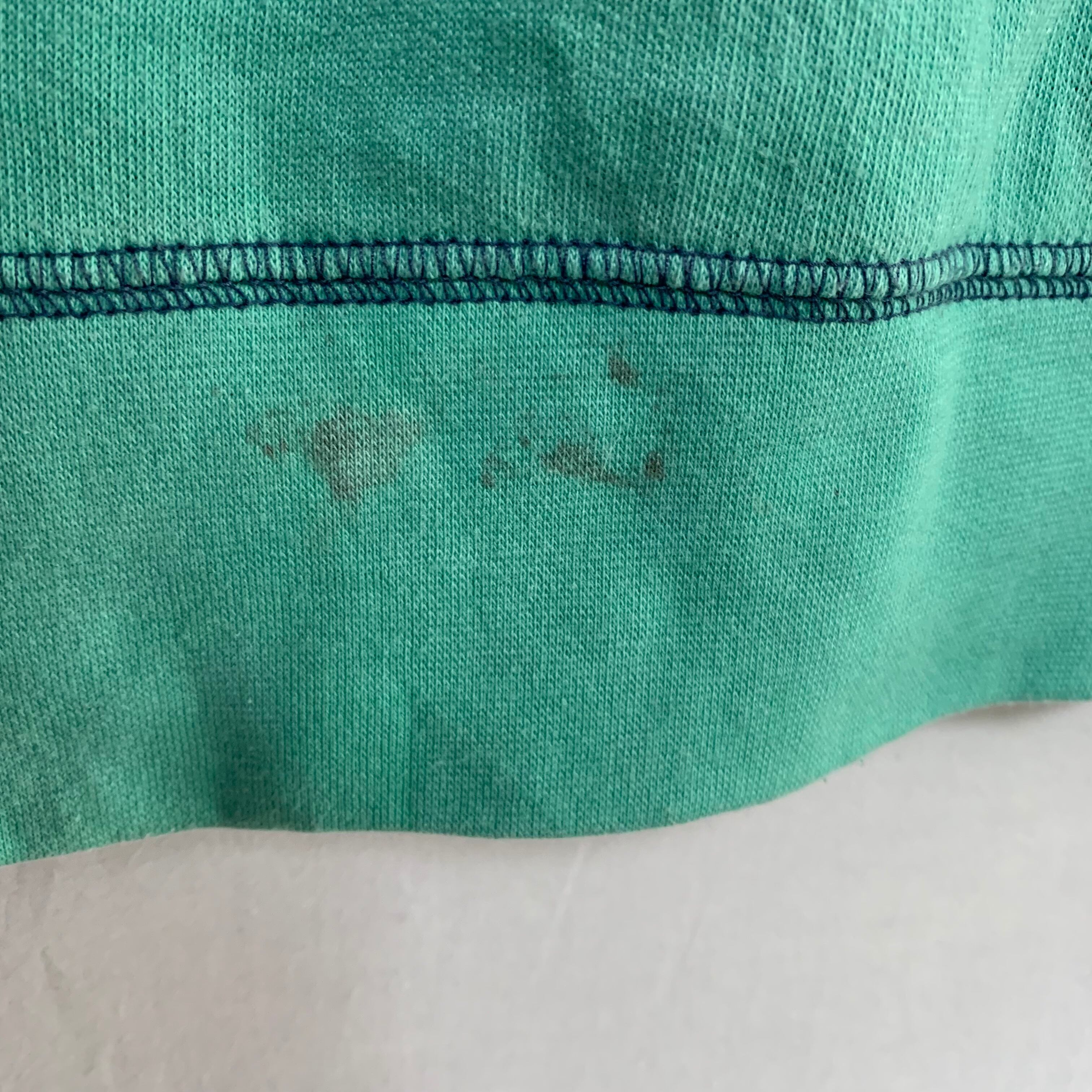 裾リブと背面にシミがあります。裾リブステッチがぬけています。