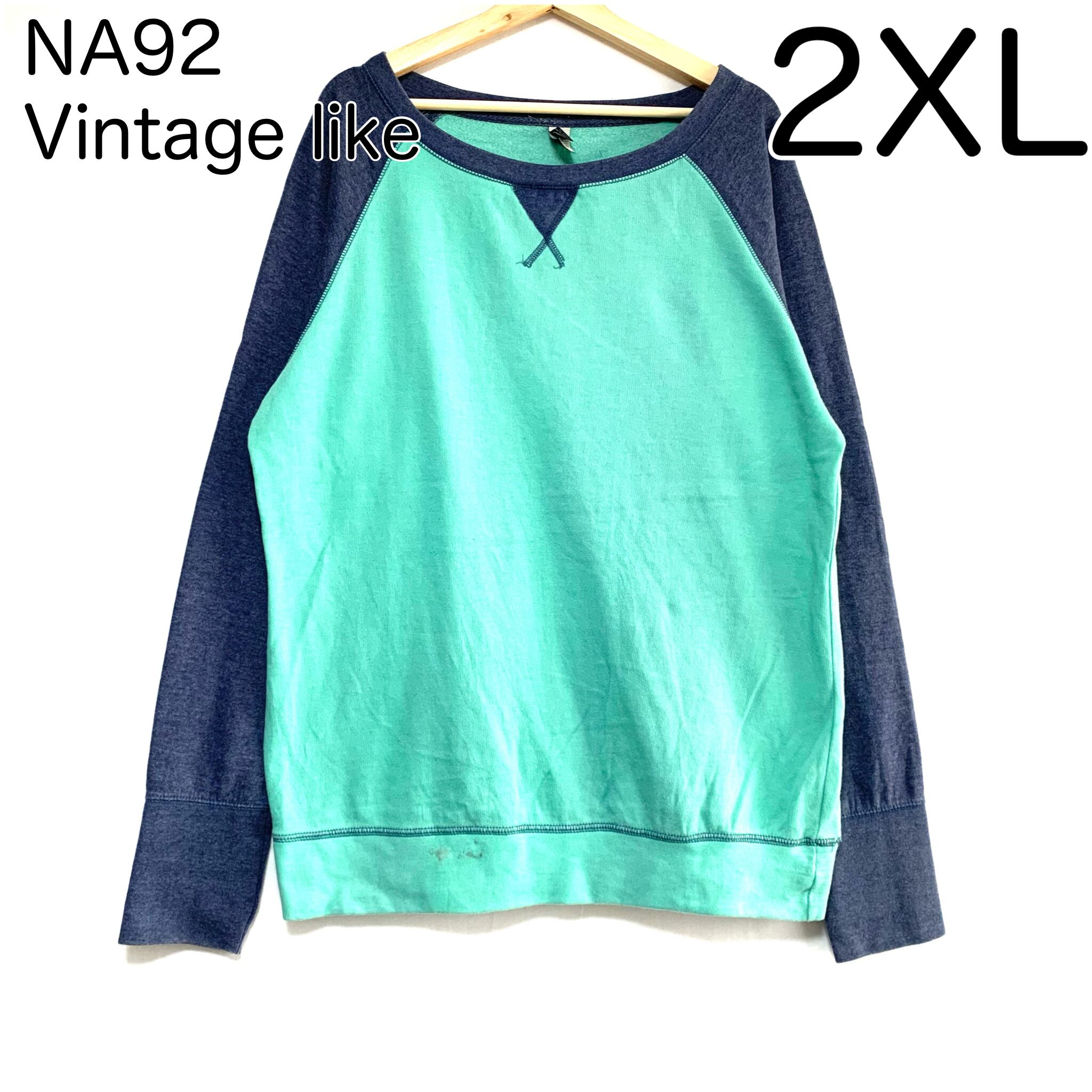 US古着 New Agenda 60年代復刻ヴィンテージ スウェット ラグラン ツートン オーバーサイズ