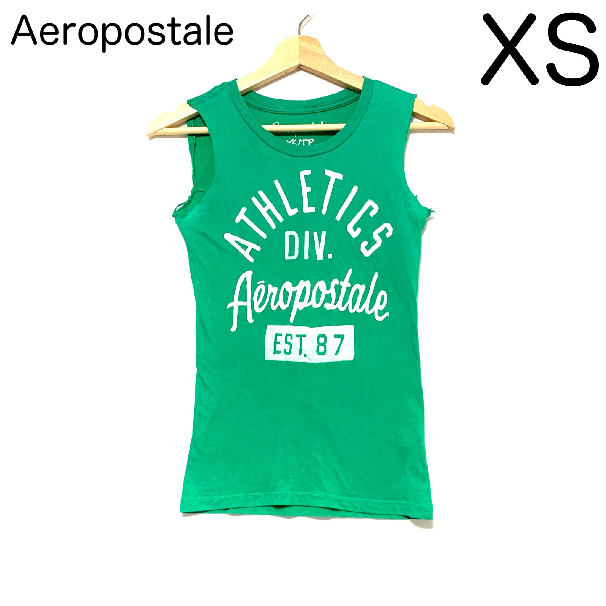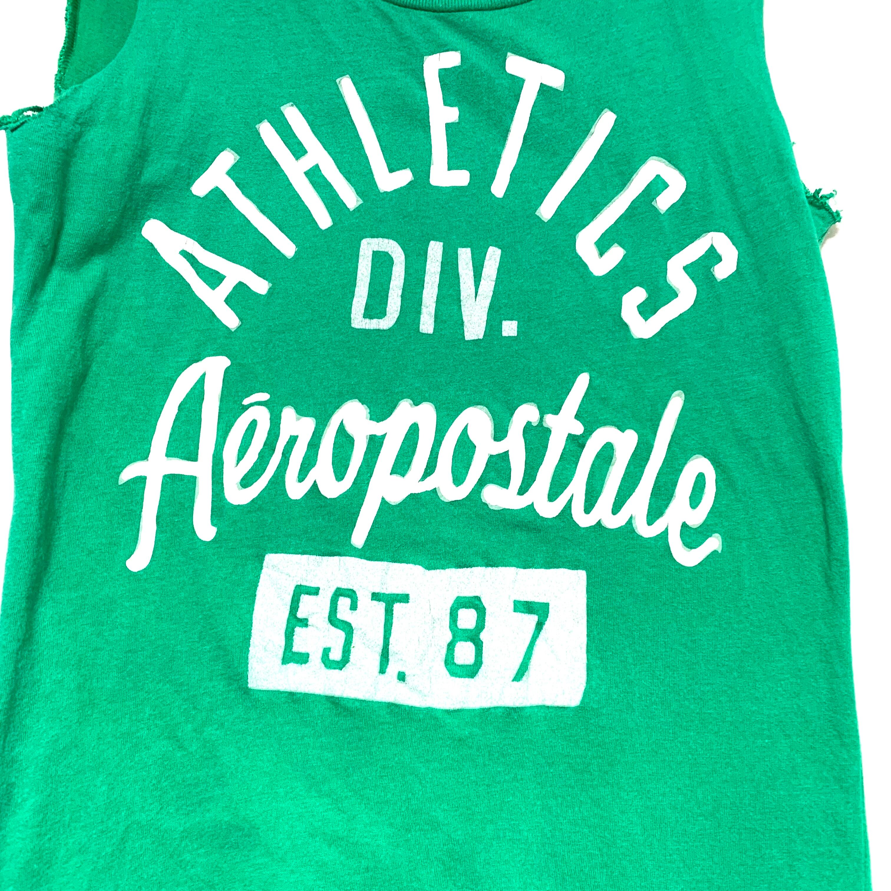 輸入古着 Aeropostale エアロポステール ノースリーブ Tシャツ 3段プリント グリーン タンクトップ