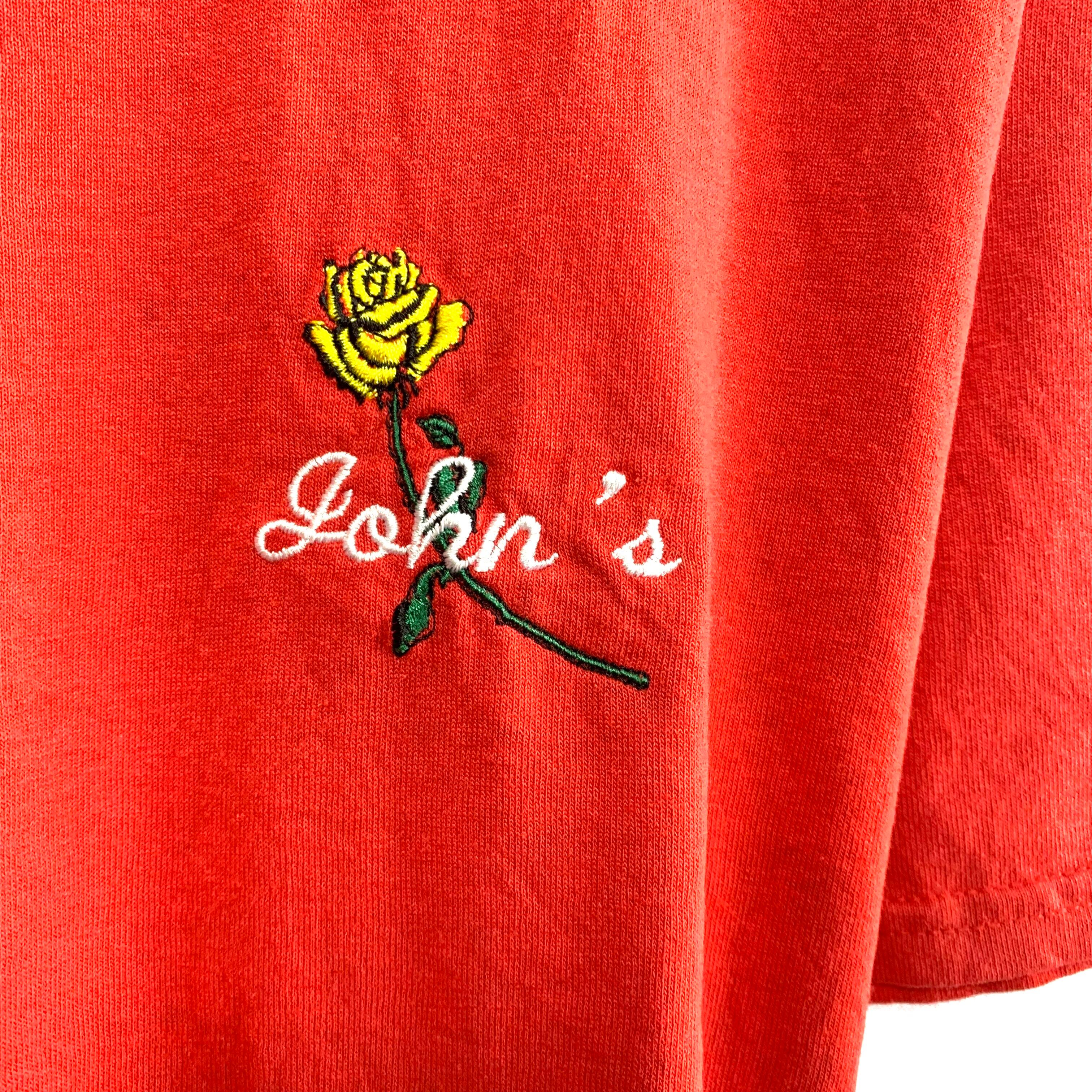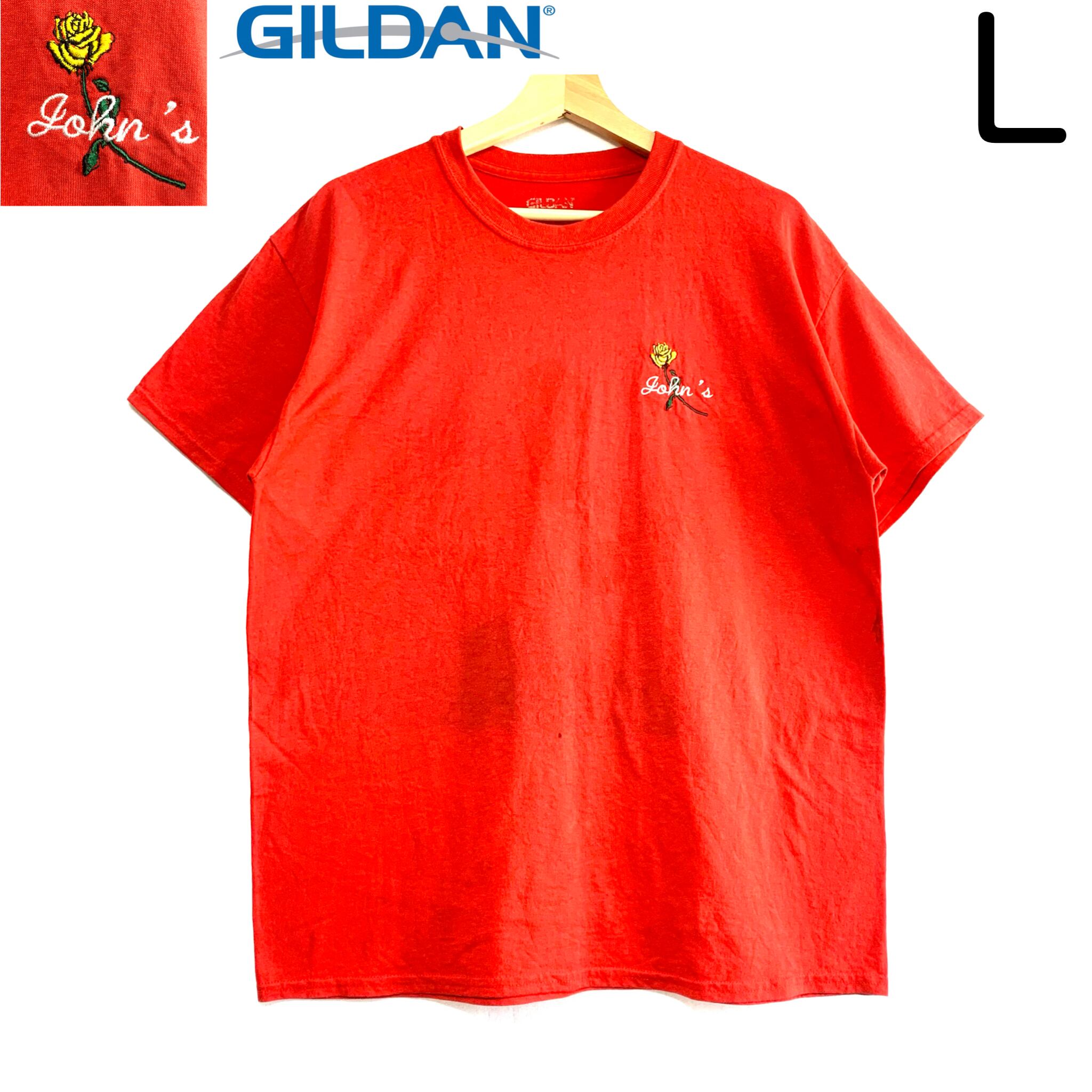輸入古着 John's 薔薇 刺繍 Tシャツ レッド Gildan ギルダン