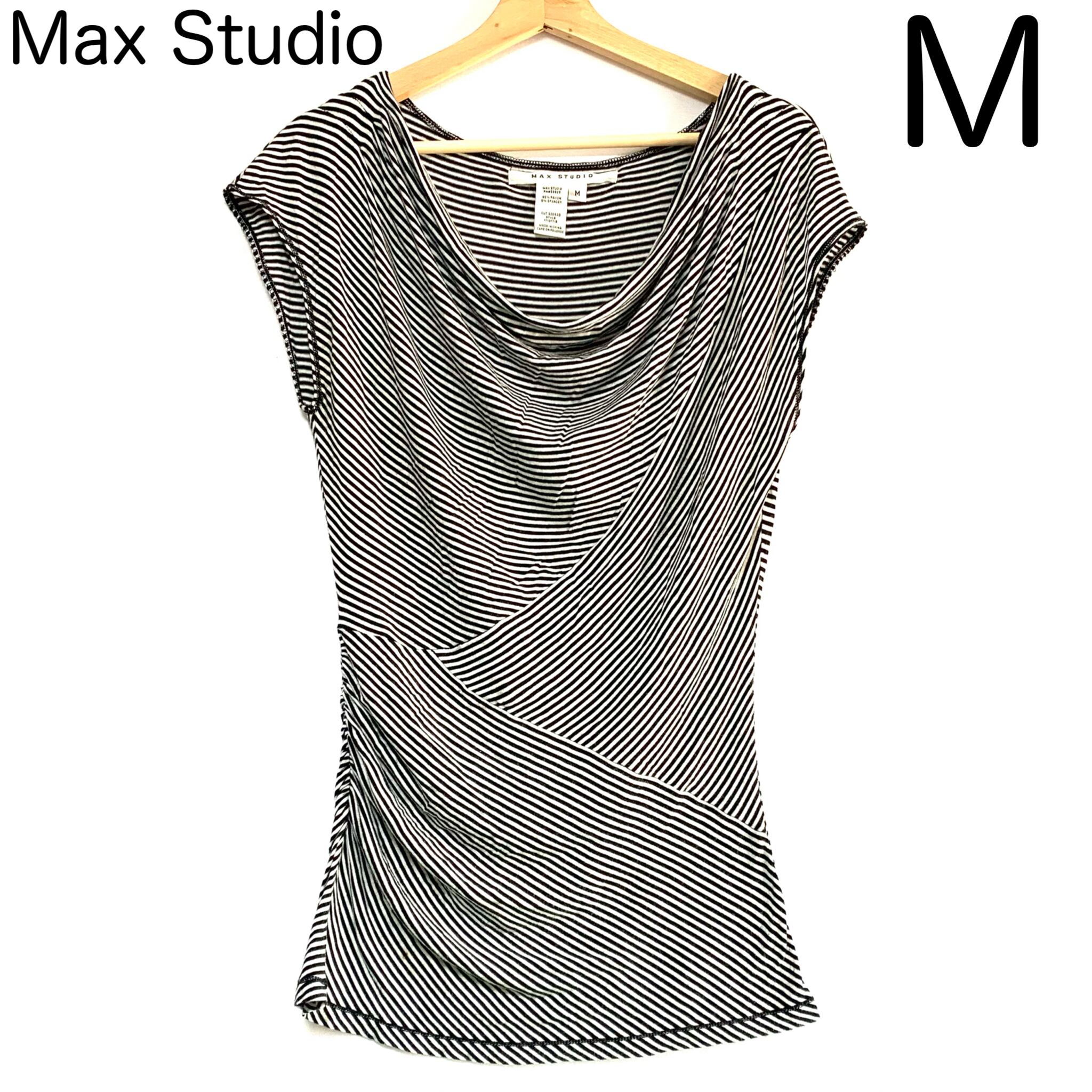輸入古着 Max Studio 変形カットソー 白黒 ボーダー フレンチスリーブ