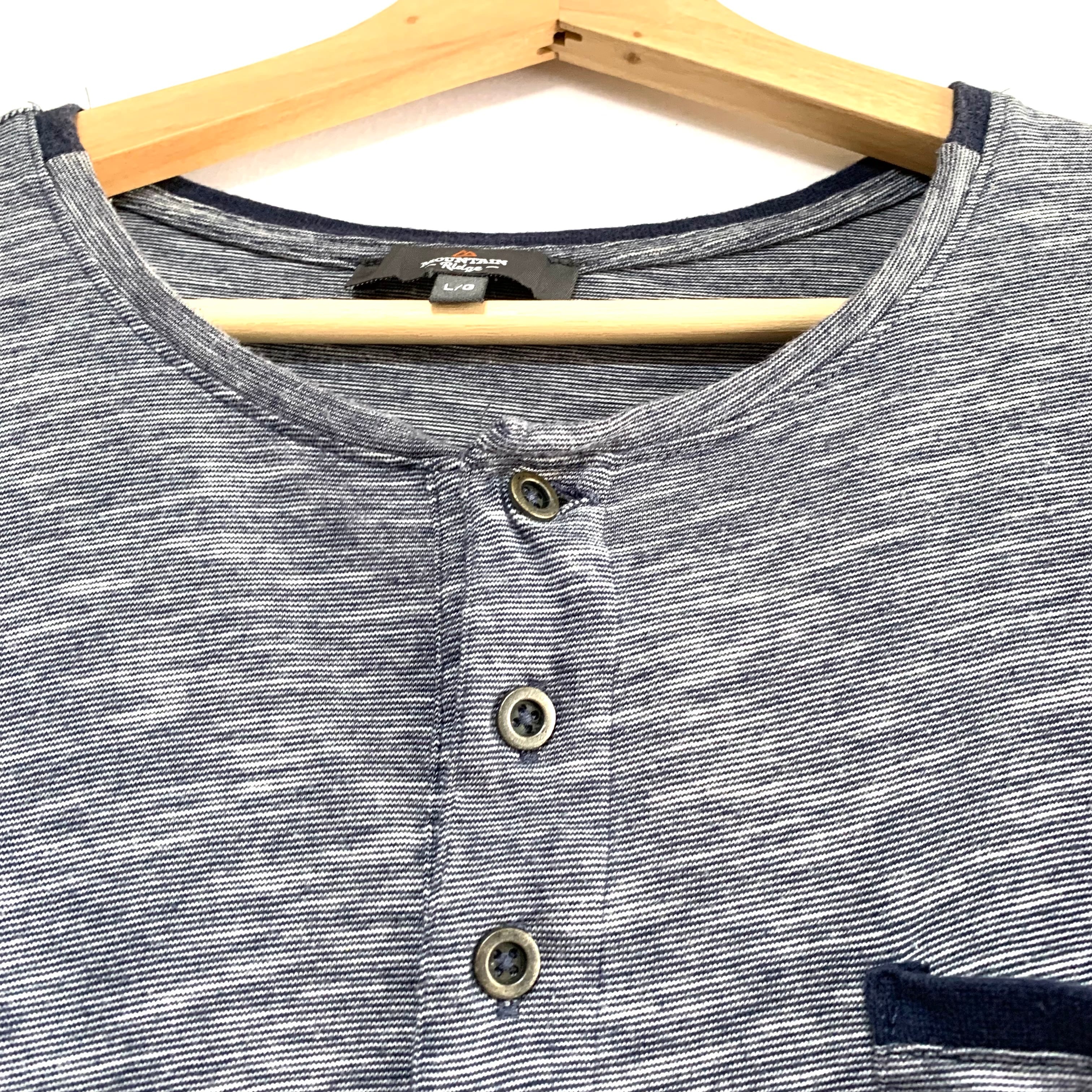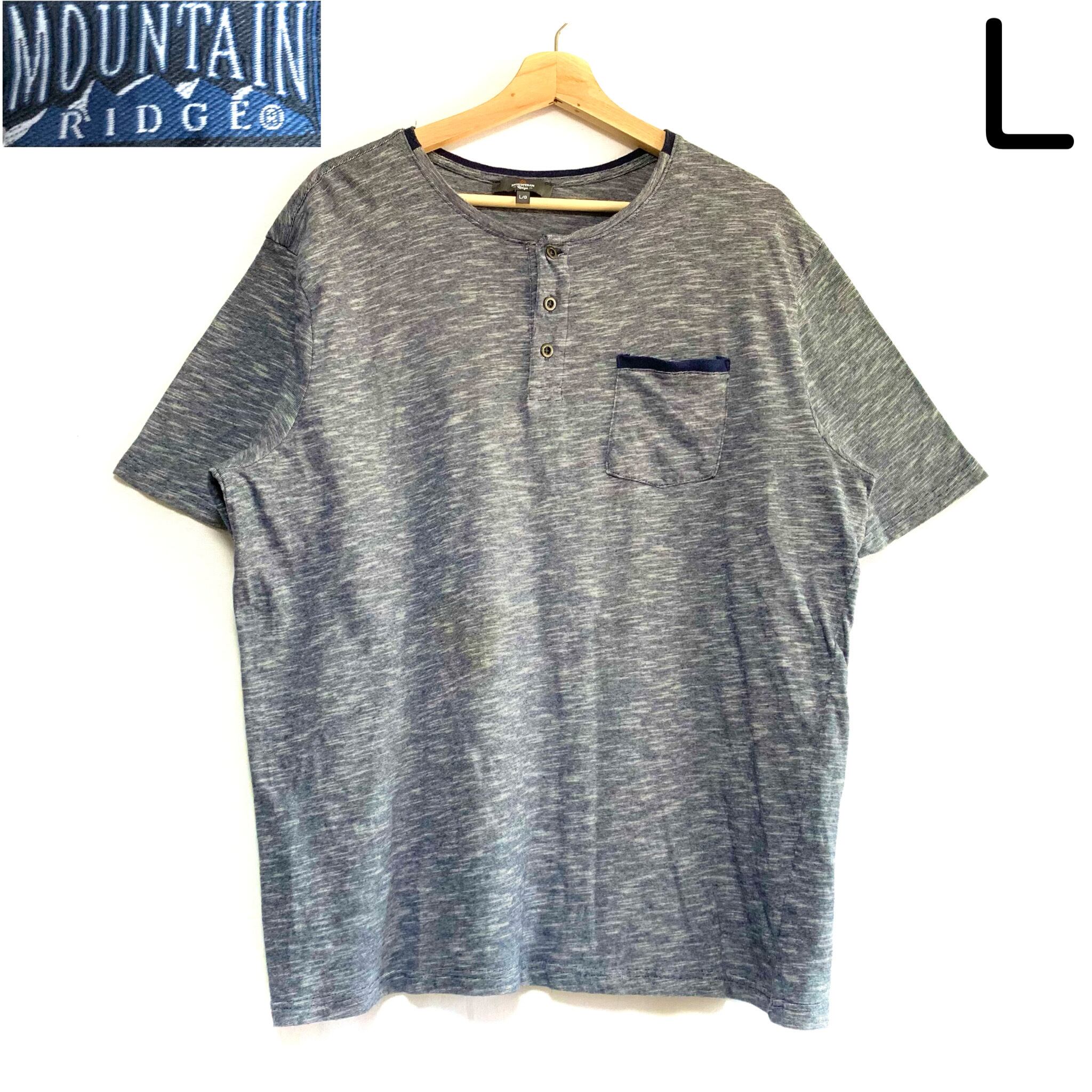 輸入古着 Mountain Ridge ヘンリーネック Tシャツ オーバーサイズ 霜降りネイビー ポケット付き