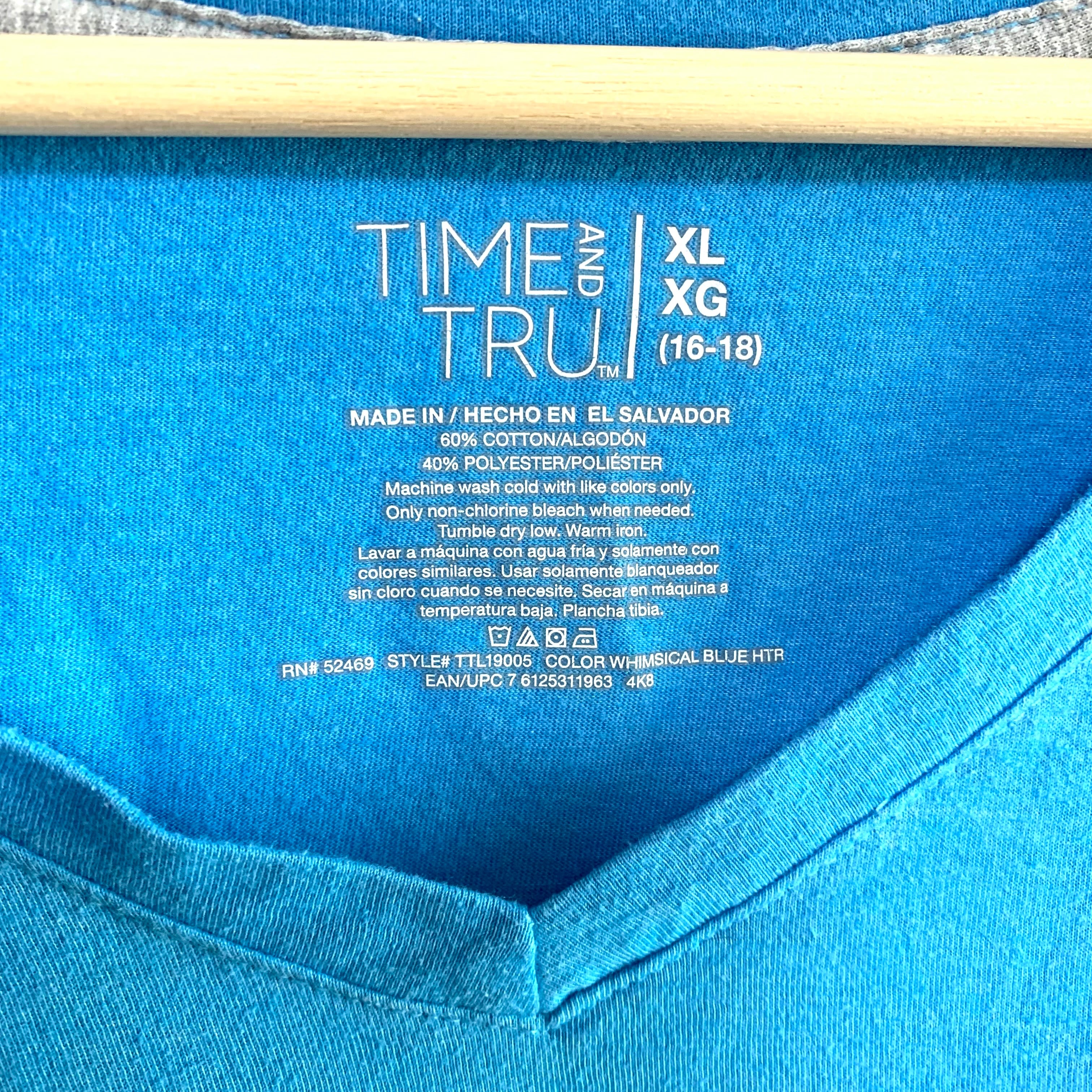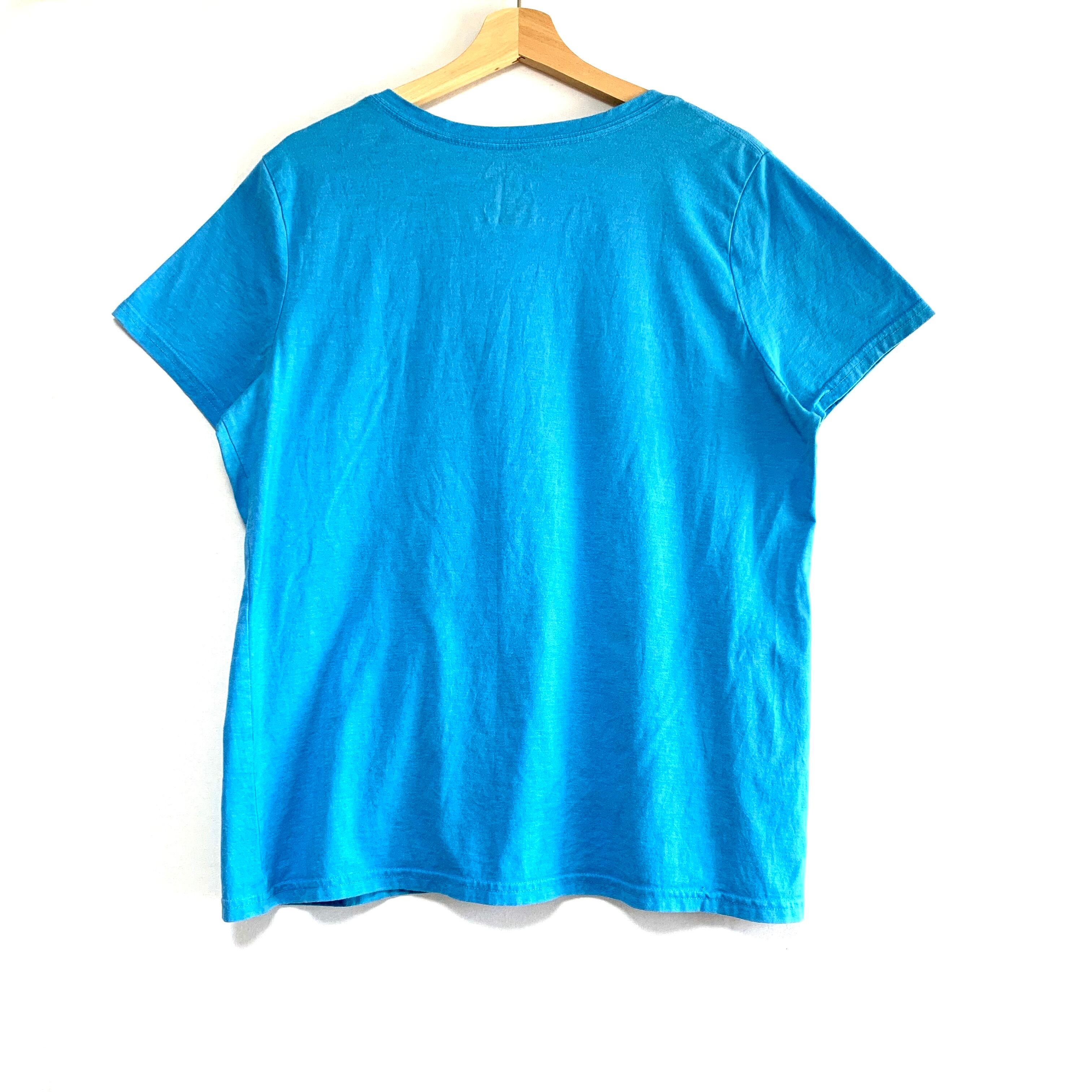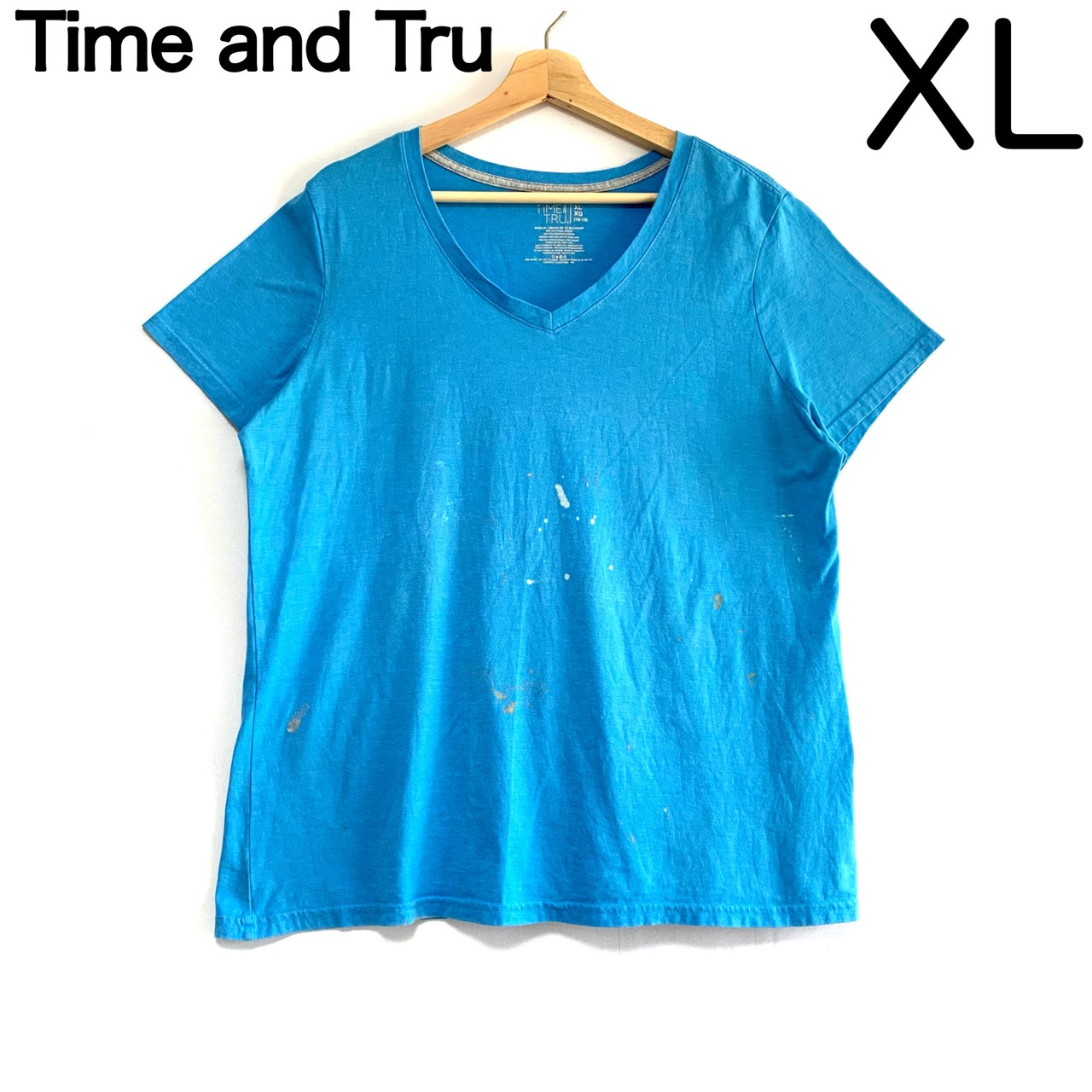 輸入古着 Time and Tru Vネック Tシャツ オーバーサイズ ライトブルー ペンキスプラッシュ