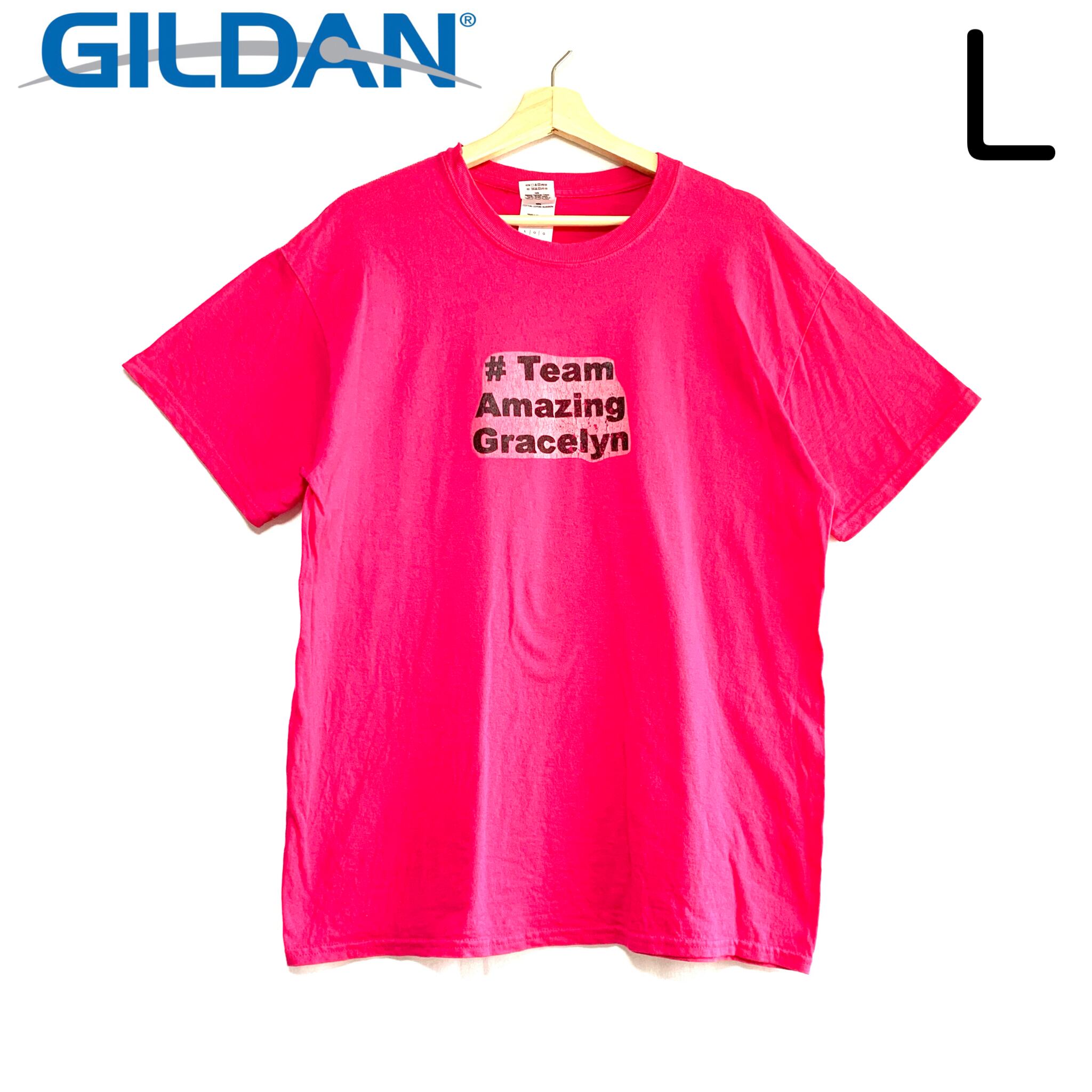 輸入古着 GILDAN ギルダン YouTuber Tシャツ ショッキングピンク ハッシュタグ