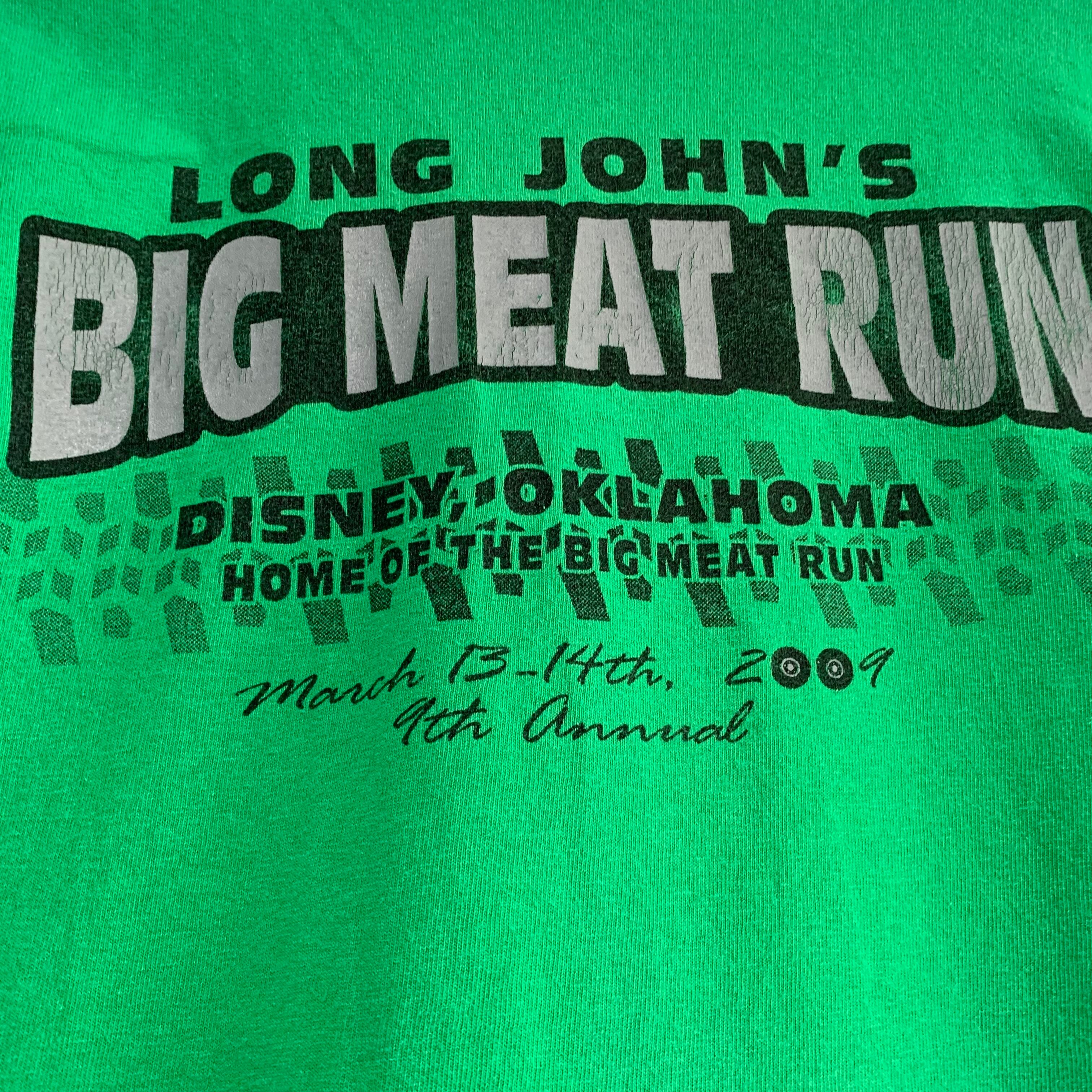 輸入古着 2009年製 Big Meat Run ビッグミートラン Tシャツ 両面プリント グリーン オフロードレース