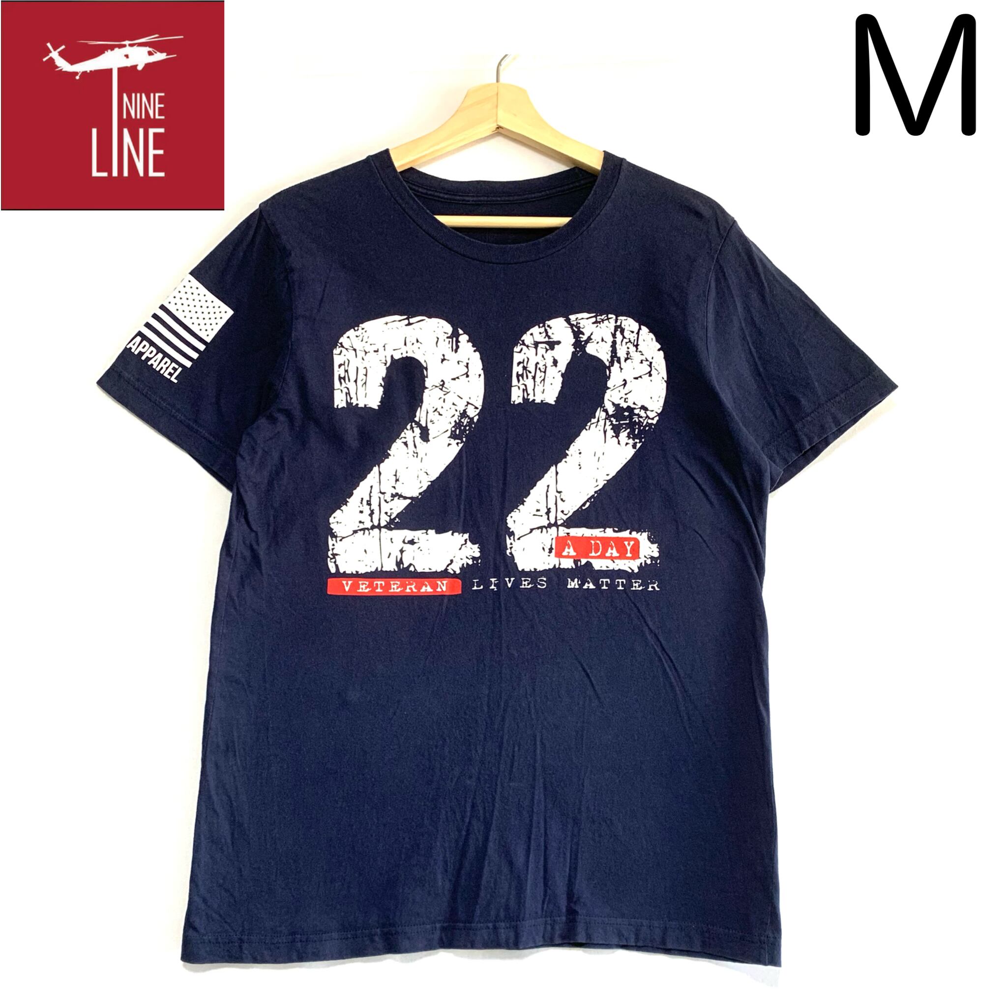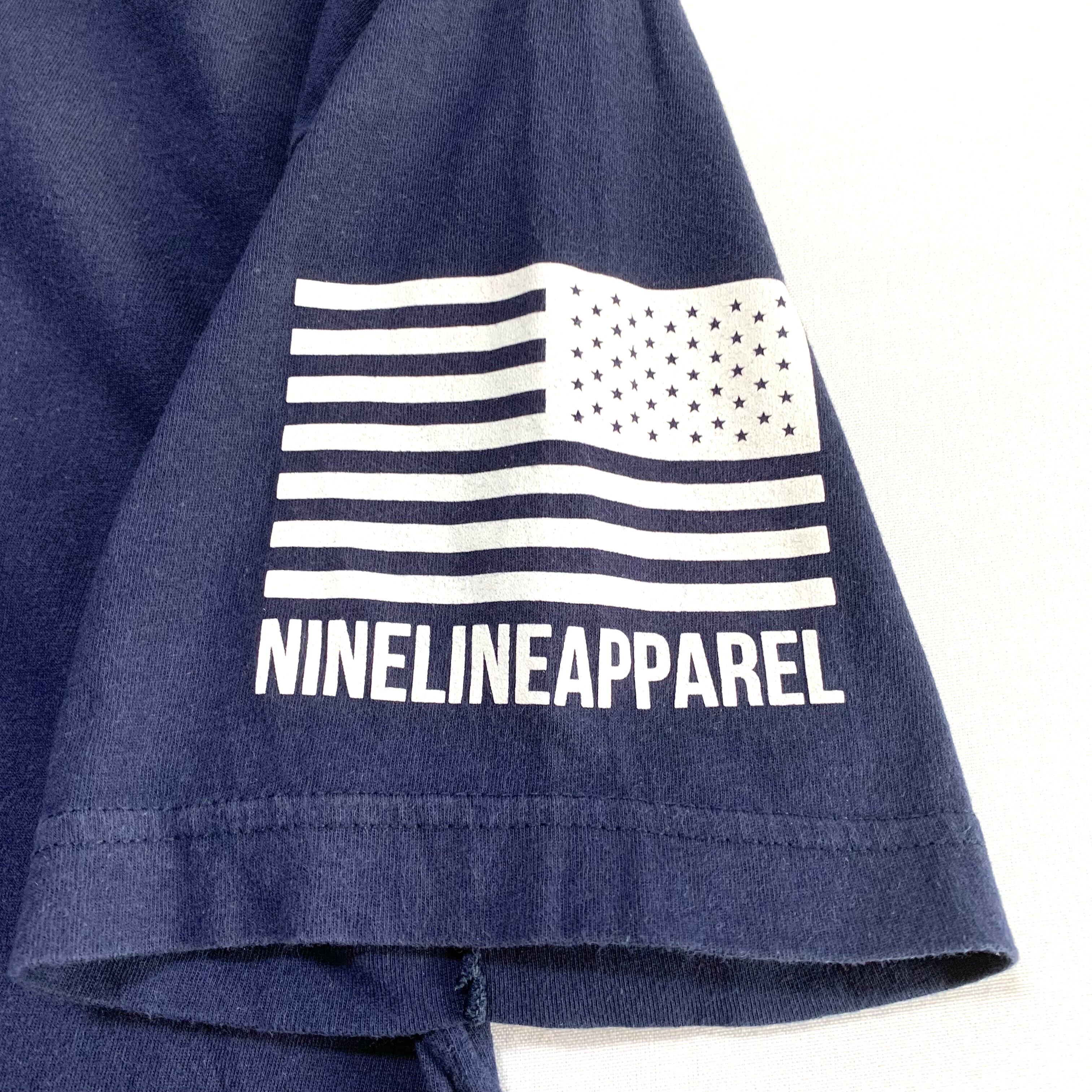 輸入古着 Nine Line ナインラインアパレル Tシャツ 袖プリント 星条旗 米軍 ネイビー
