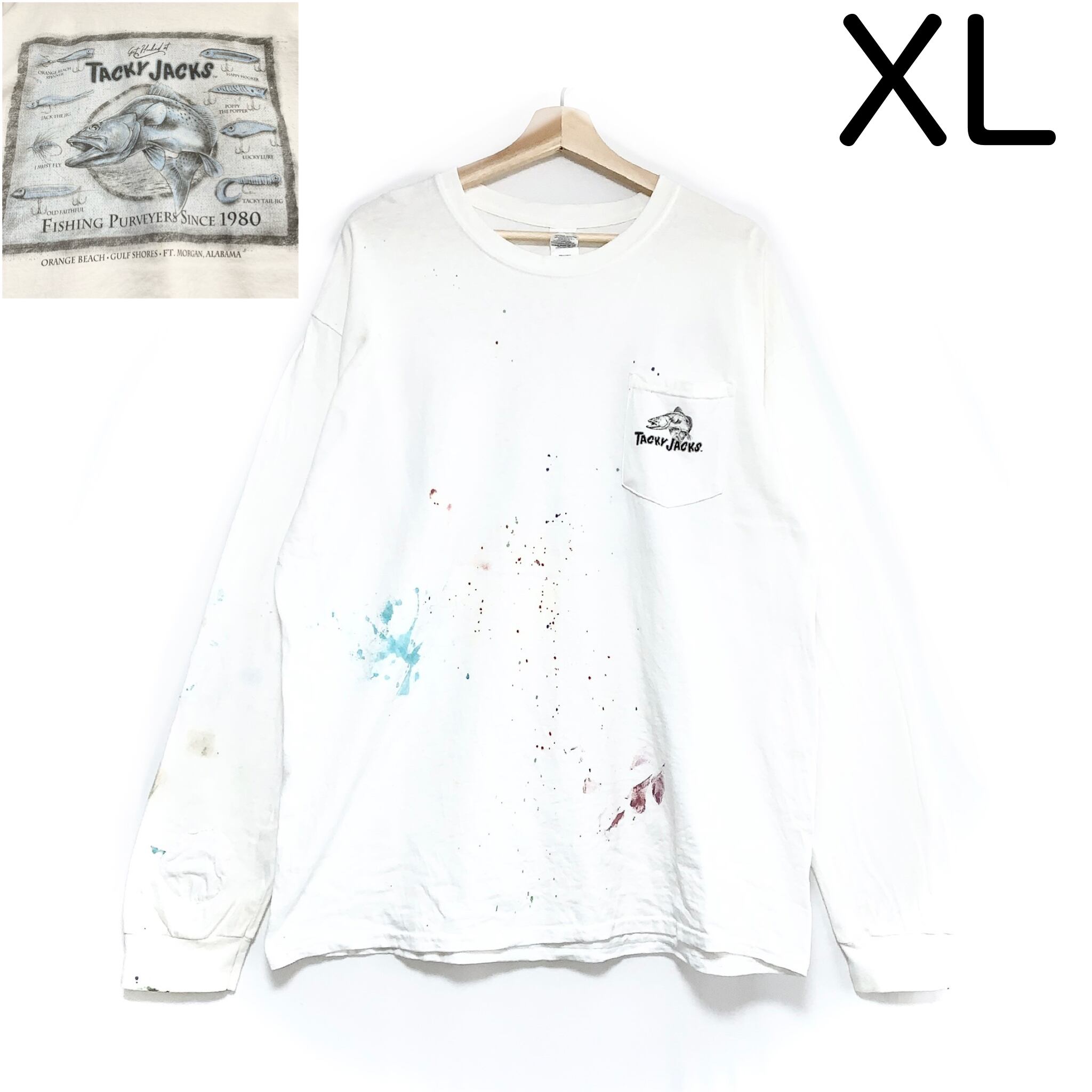 輸入古着 Gildan ギルダン ロンT 両面プリント ポケットT フィッシング アウトドア ルアー