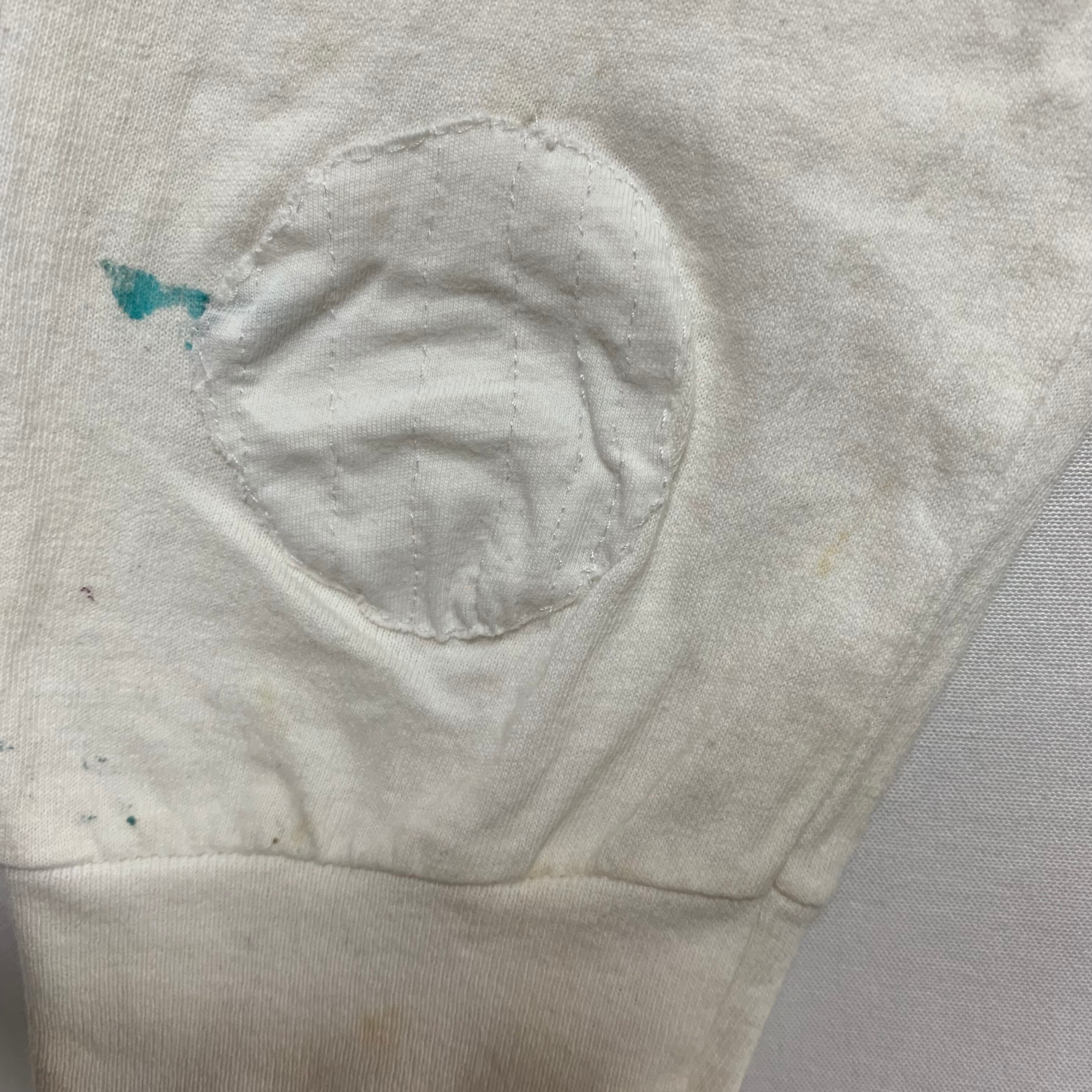 左袖に大きな汚れとリペア痕があります。