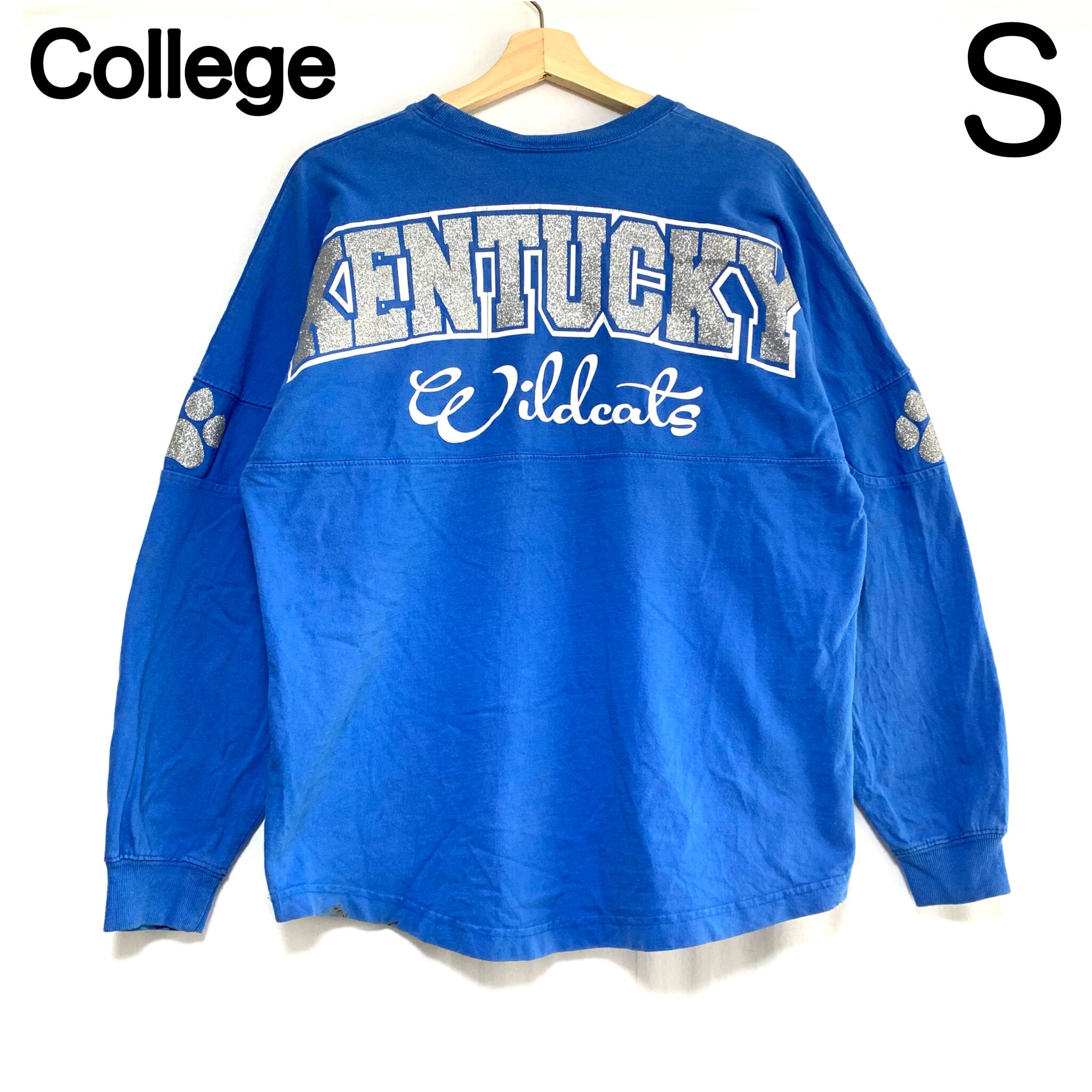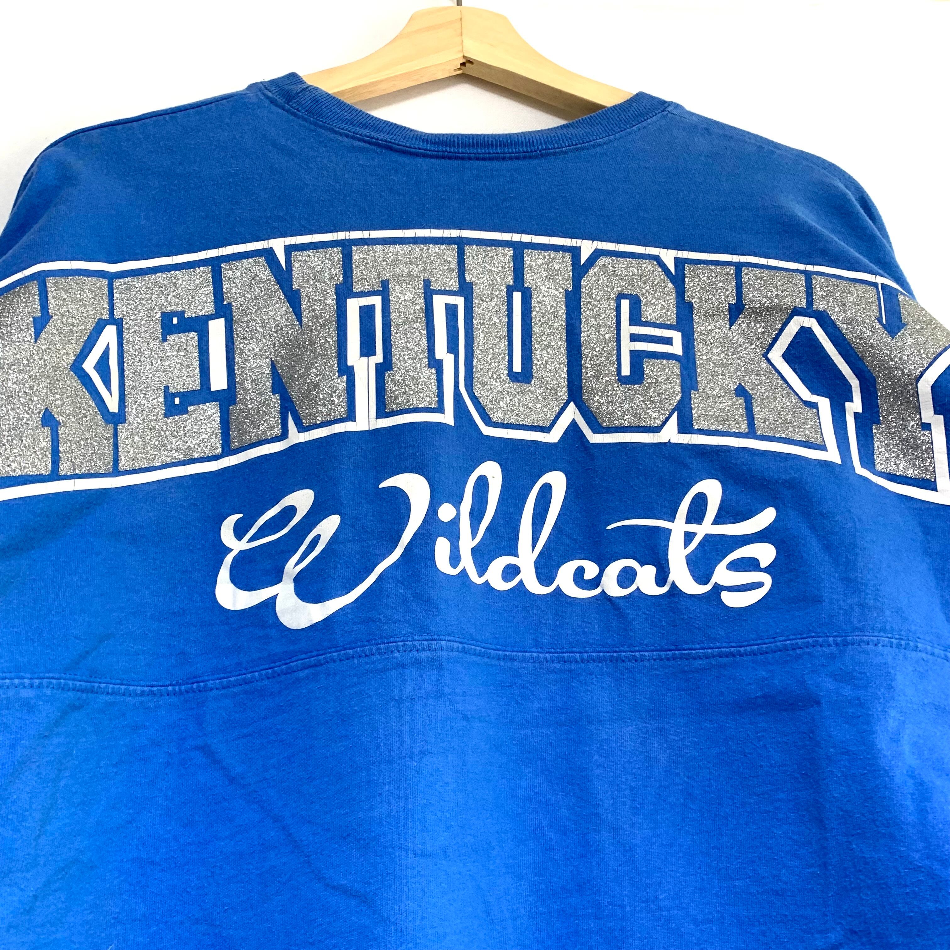輸入古着 Ketucky Wildcats ケンタッキーワイルドキャッツ ロンT カレッジロゴ ラメプリント フットボール 猫 肉球