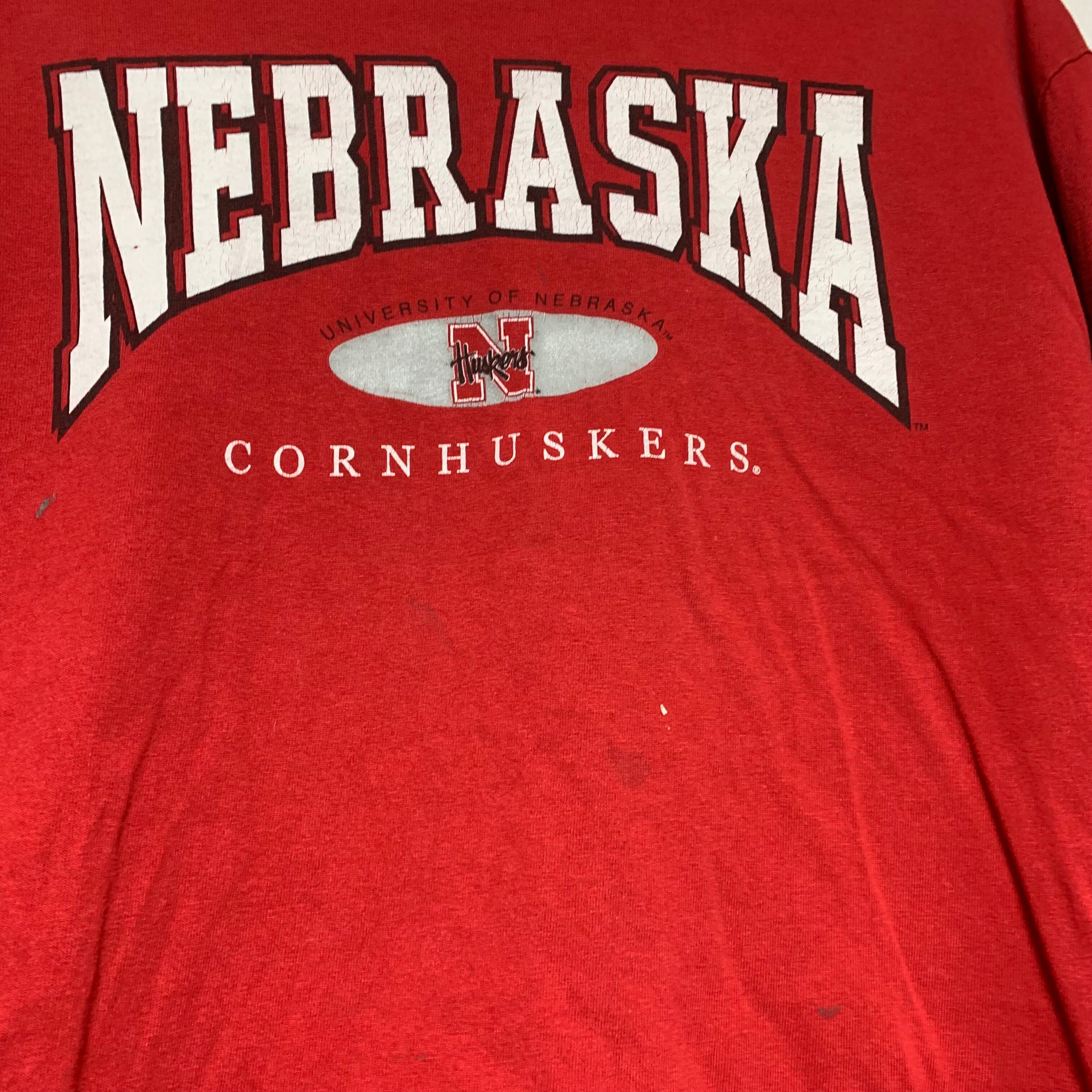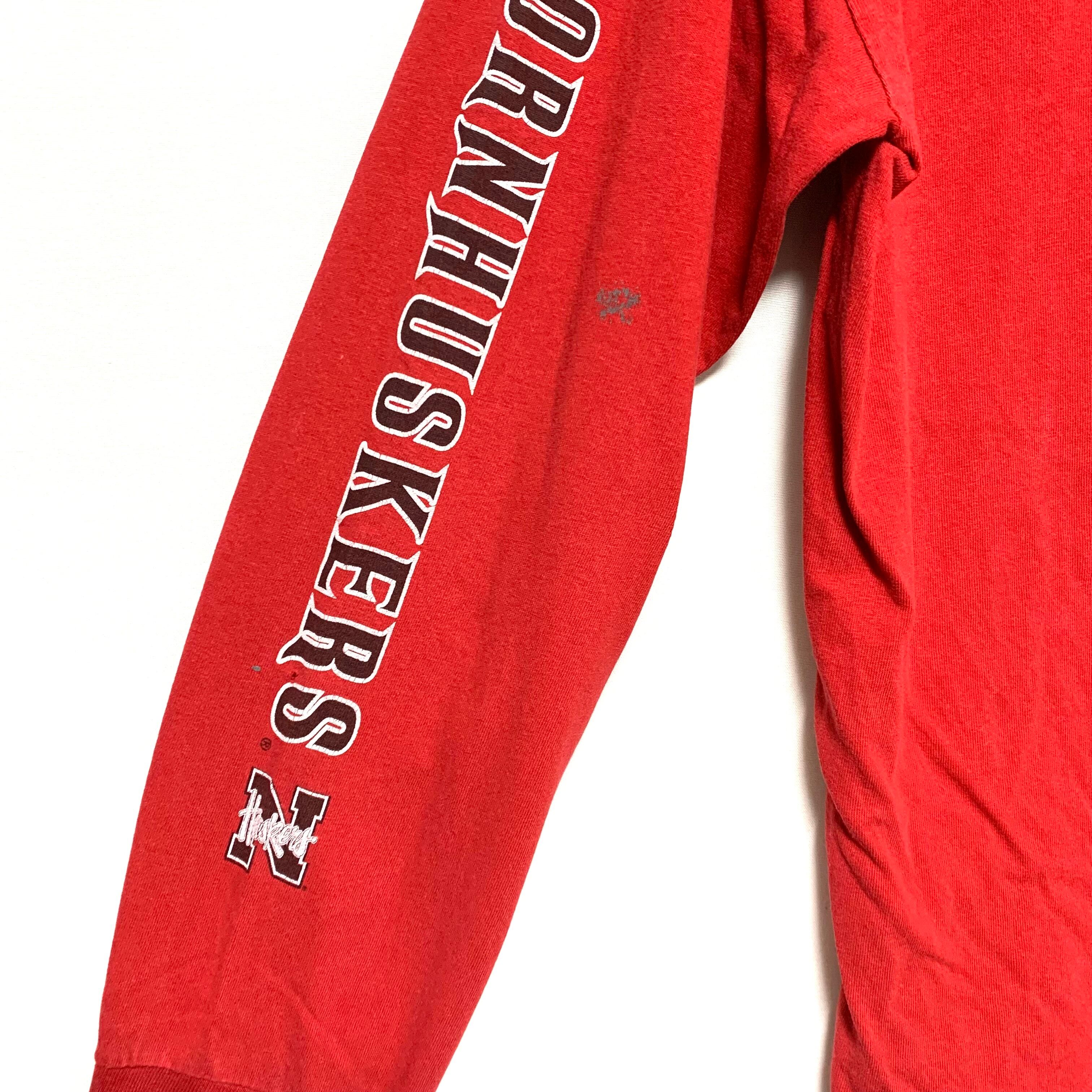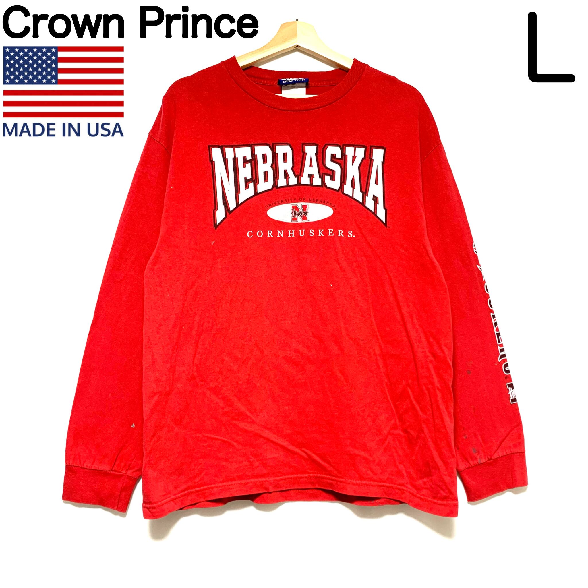 輸入古着 USA製 Crown Prince 袖プリント ロンT カレッジロゴ ネブラスカ大学