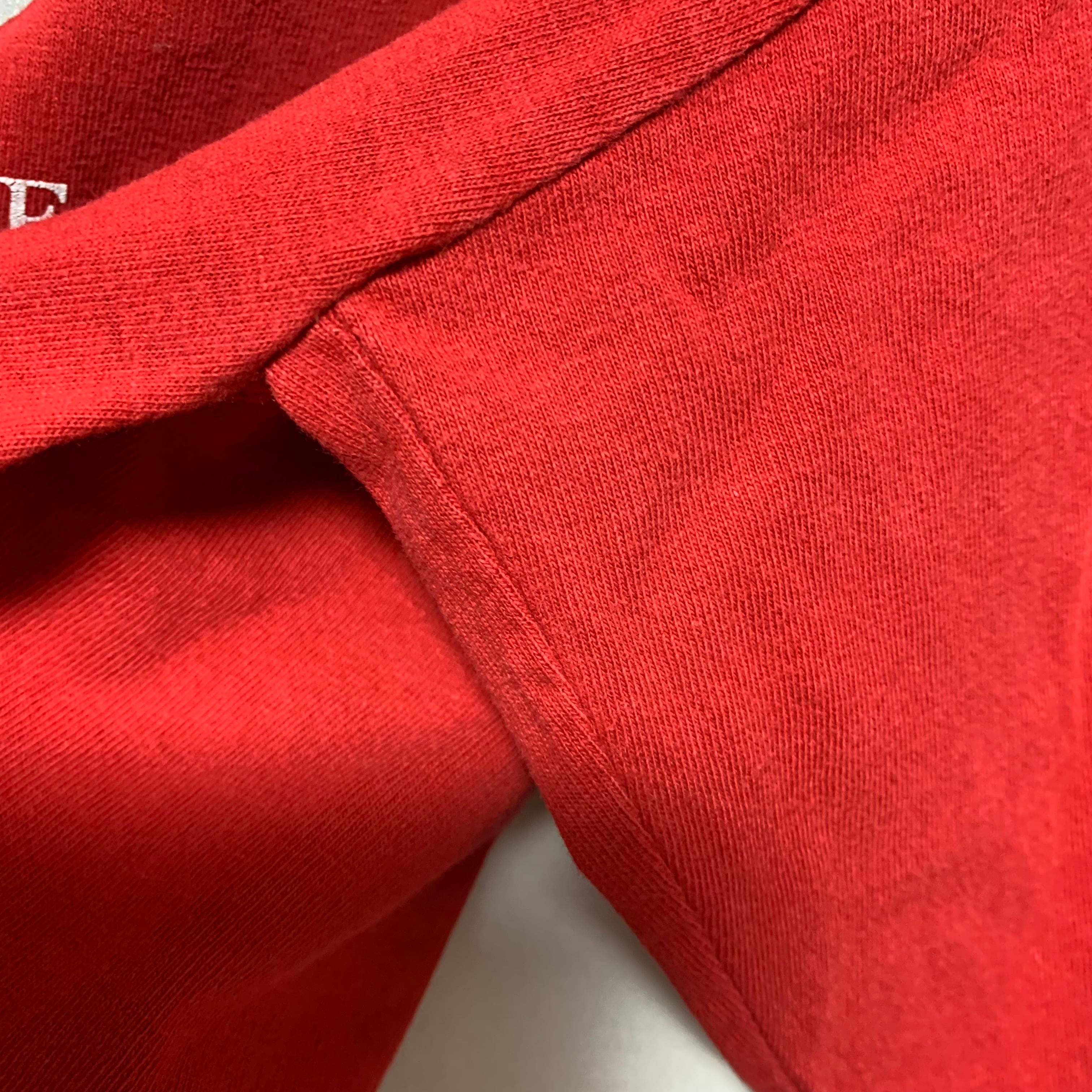 左袖プリントのRとSの間に小穴があります。