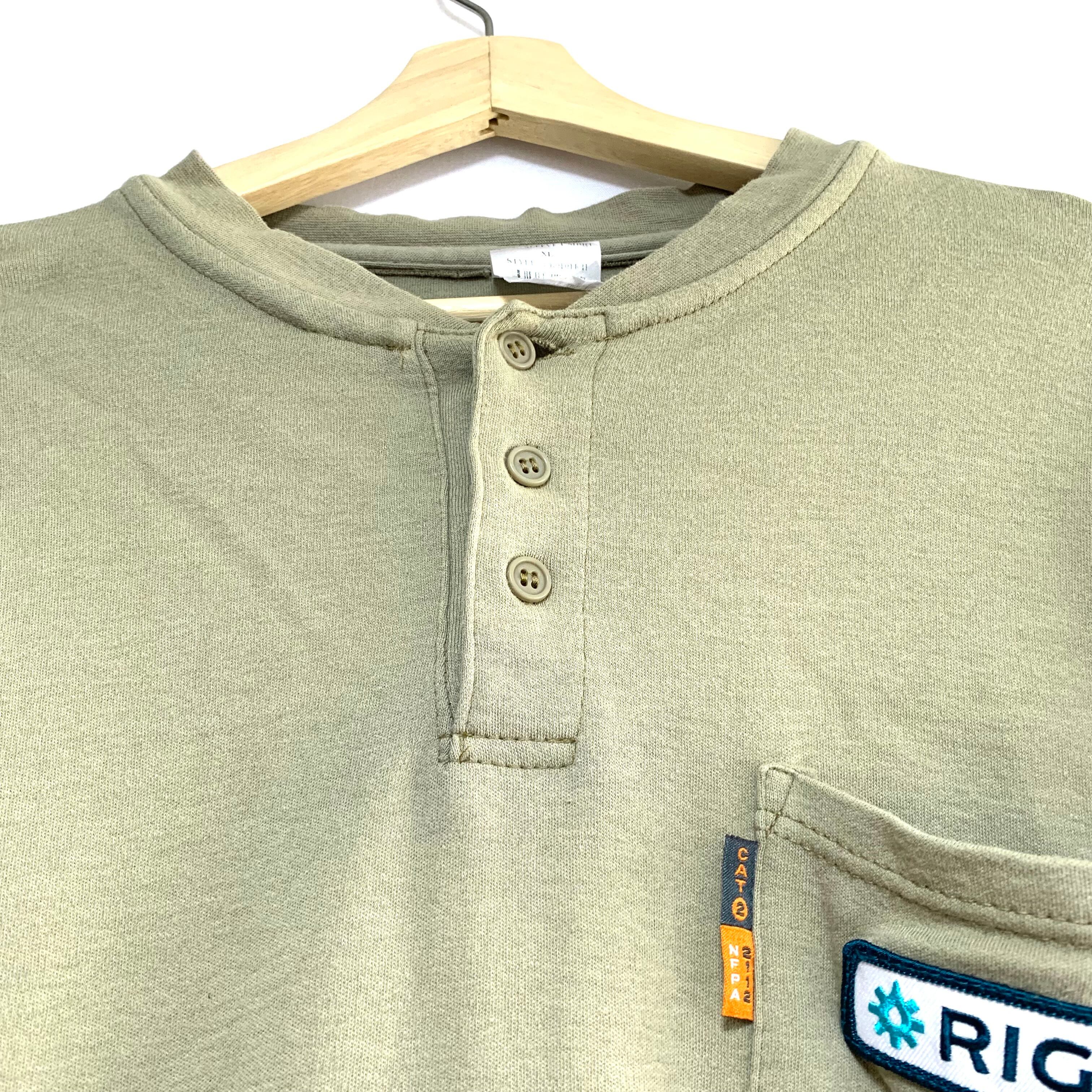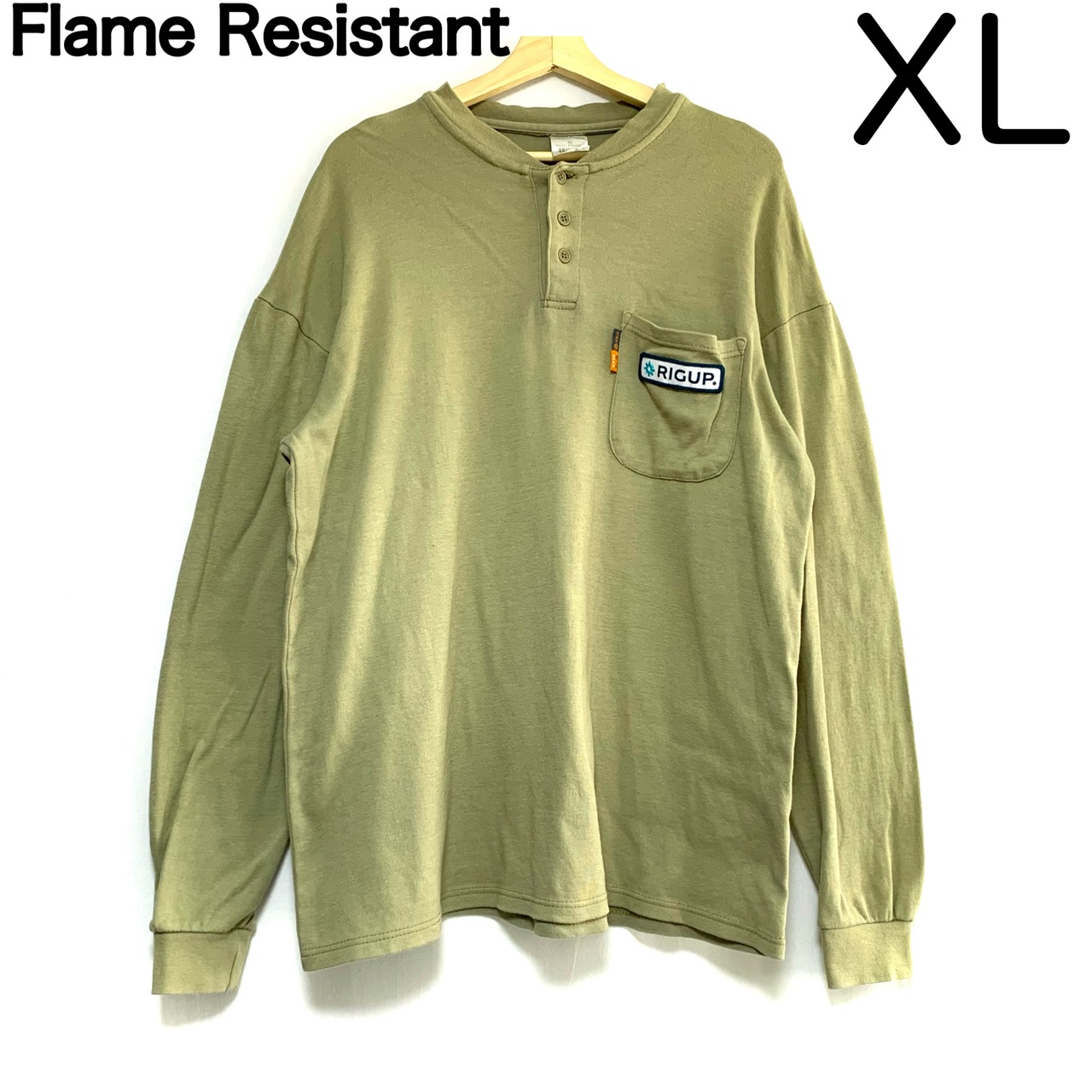 輸入古着 Flame Resistant ヘンリーネック ロンT カーキ ワークウェア 薄カーキ
