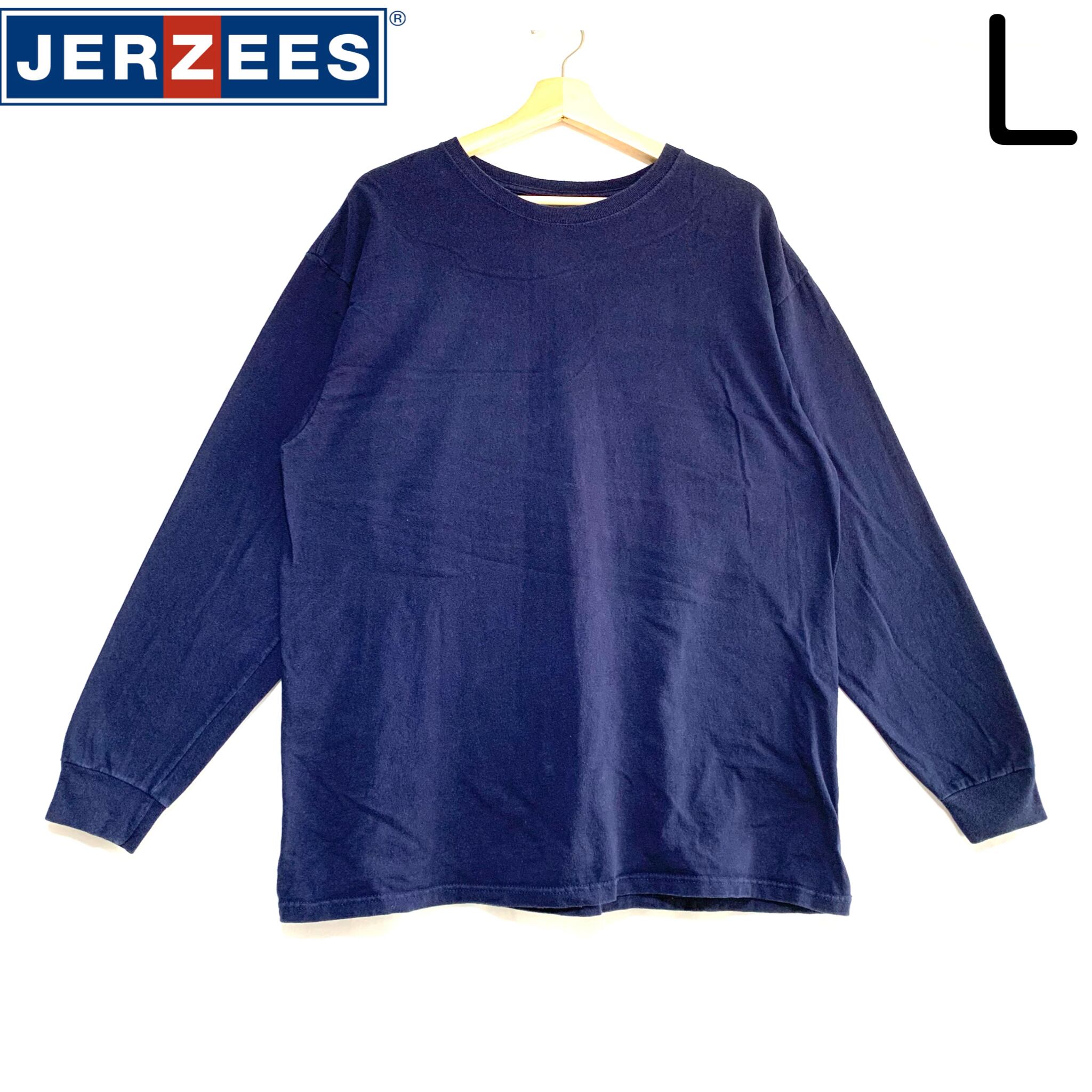輸入古着 Jerzees ジャージーズ 無地 ロンT オーバーサイズ ネイビー 長袖Tシャツ