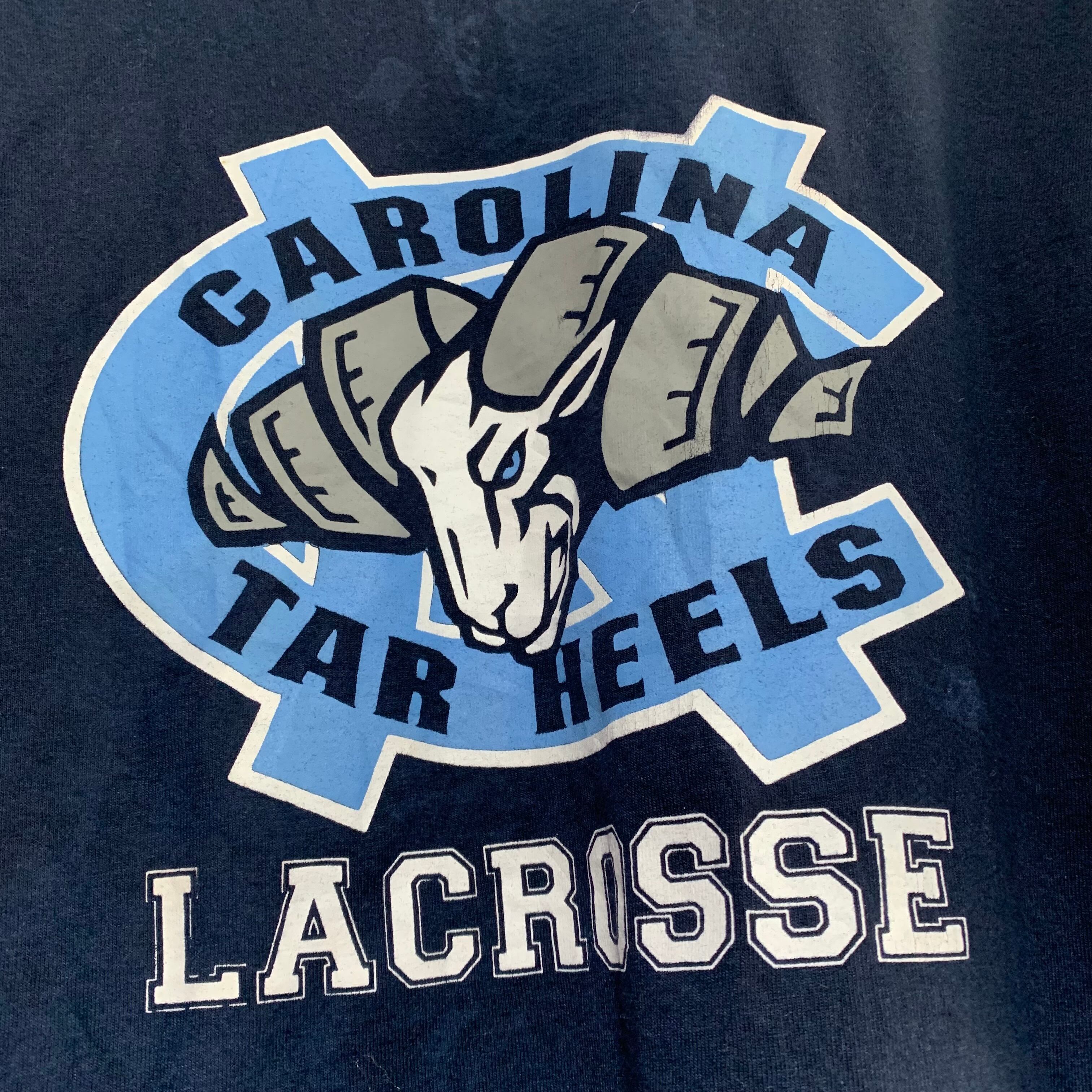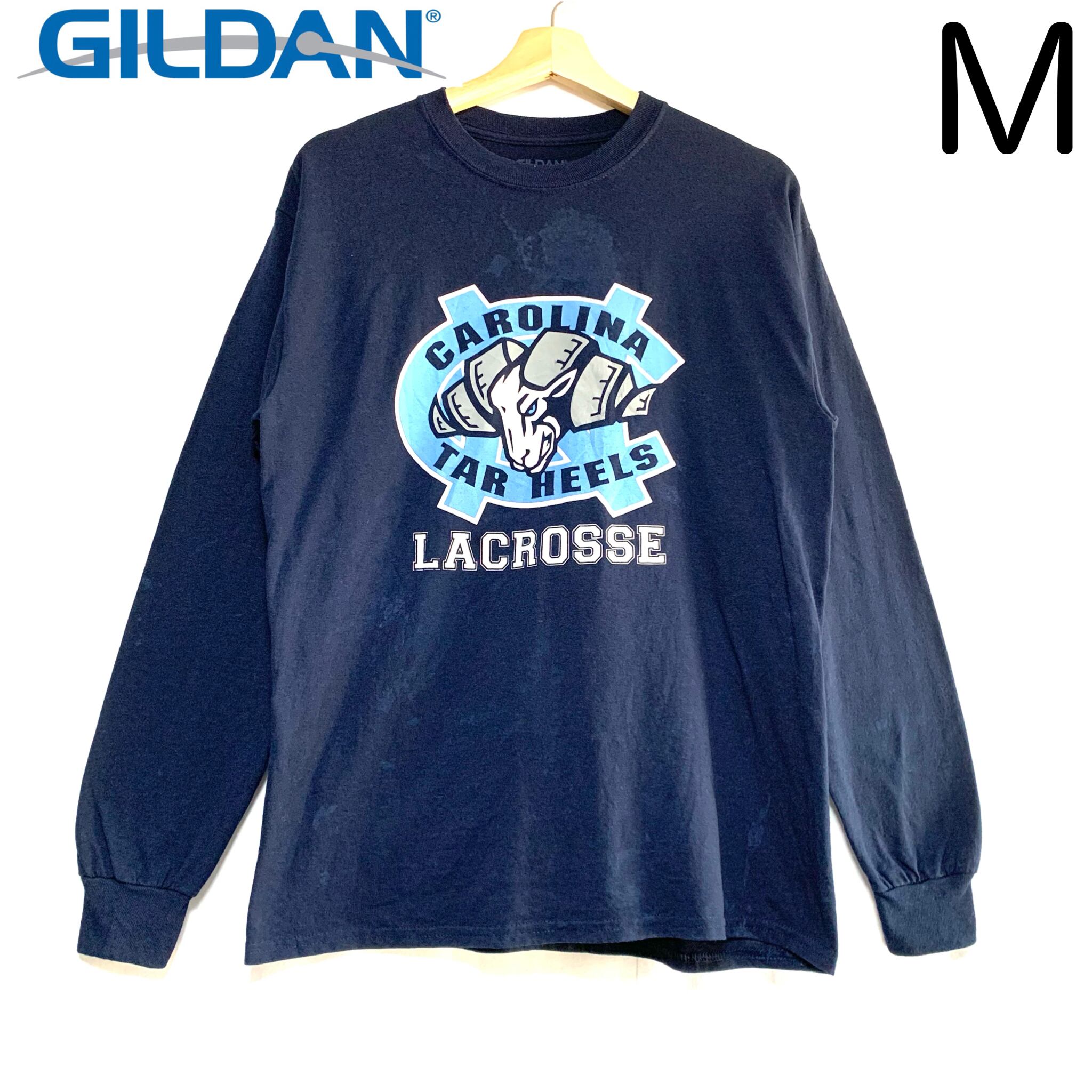 輸入古着 Gildan カレッジロゴ ロンT ラクロス ノースカロライナ大学 ターヒールズ 水牛