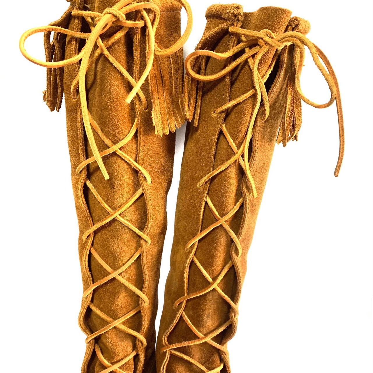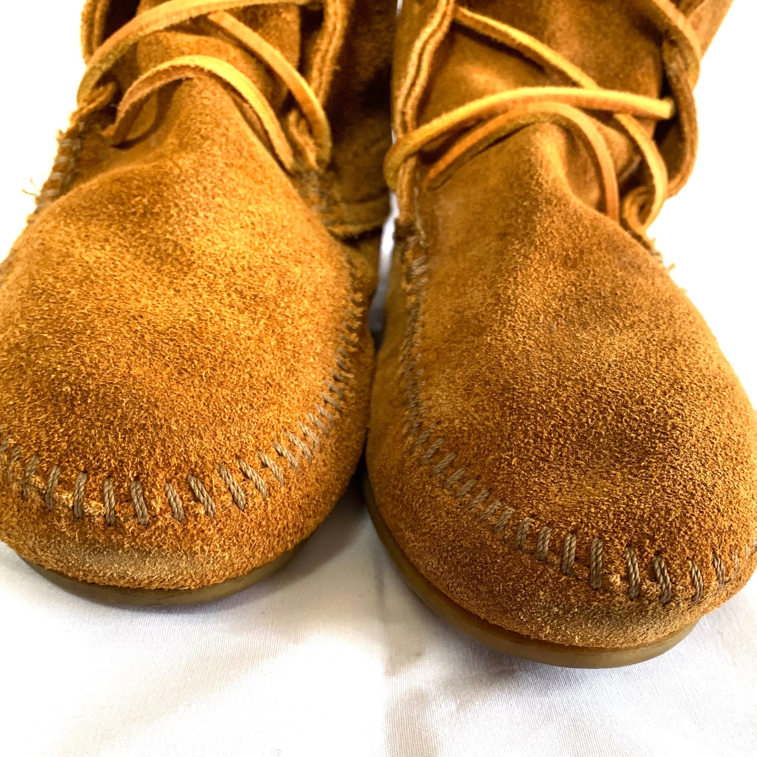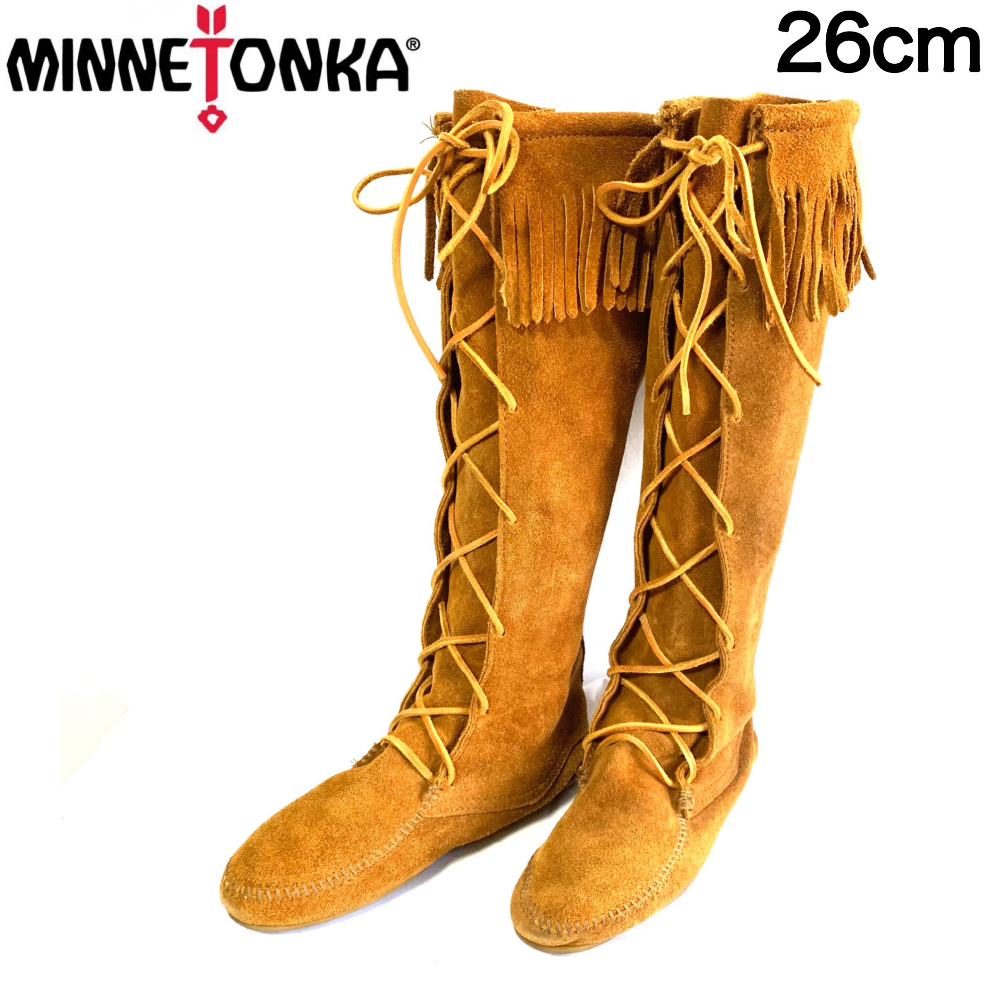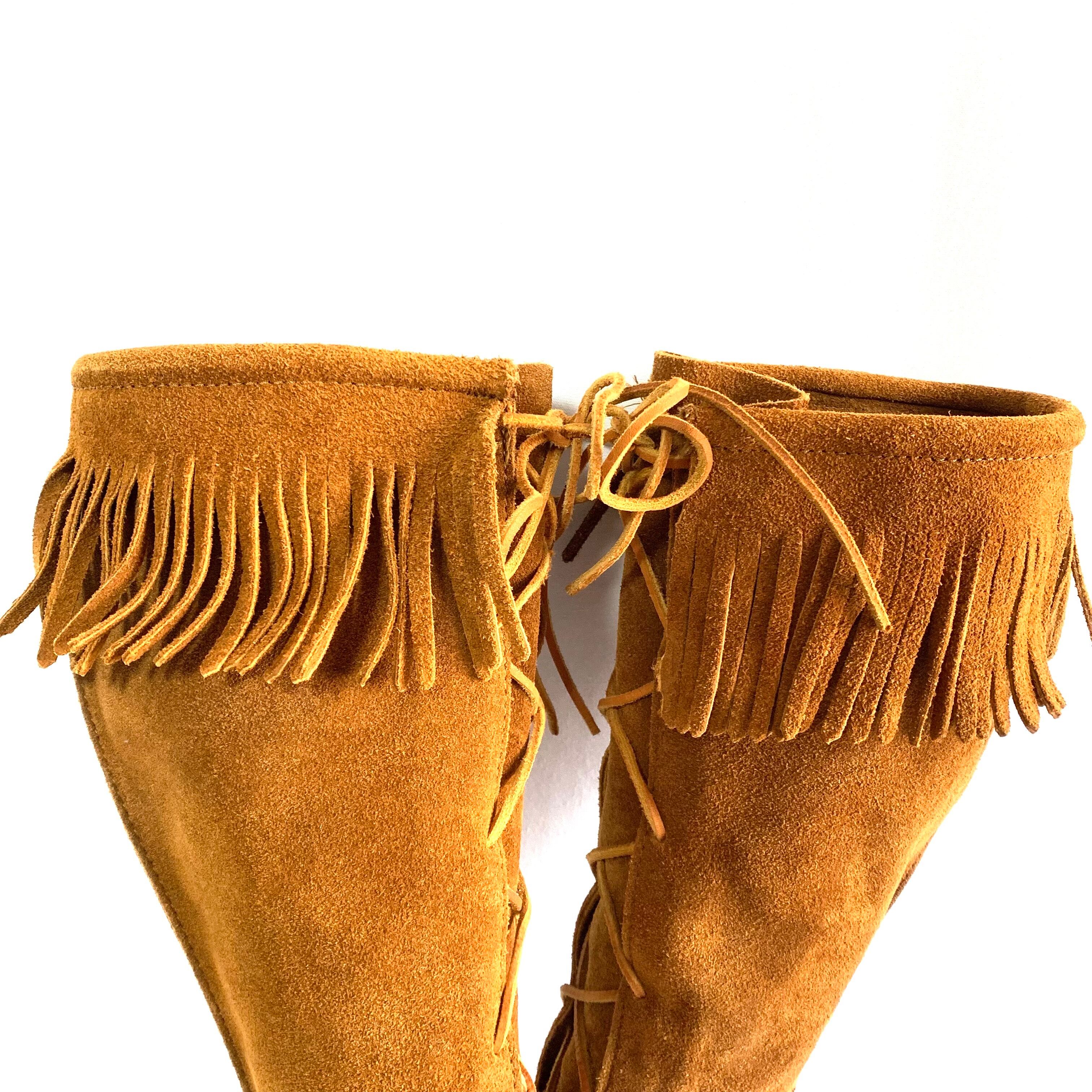 Minnetonka ミネトンカ モカシン ロングブーツ 編み上げ スエード フリンジ