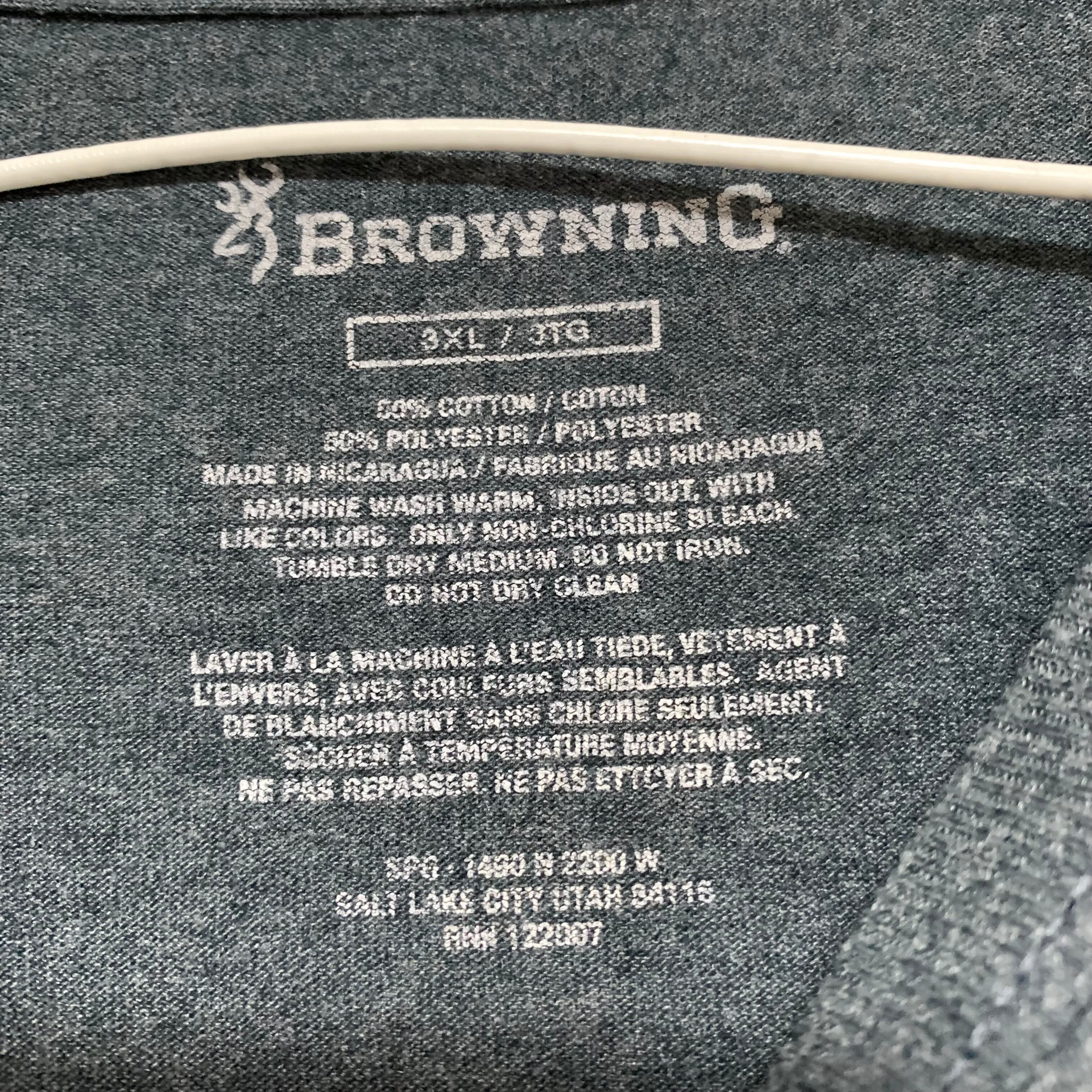 輸入古着 Browning Arms ブローニング・アームズ ビッグサイズ Tシャツ 両面プリント リアルツリー ビッグロゴ モスグレー