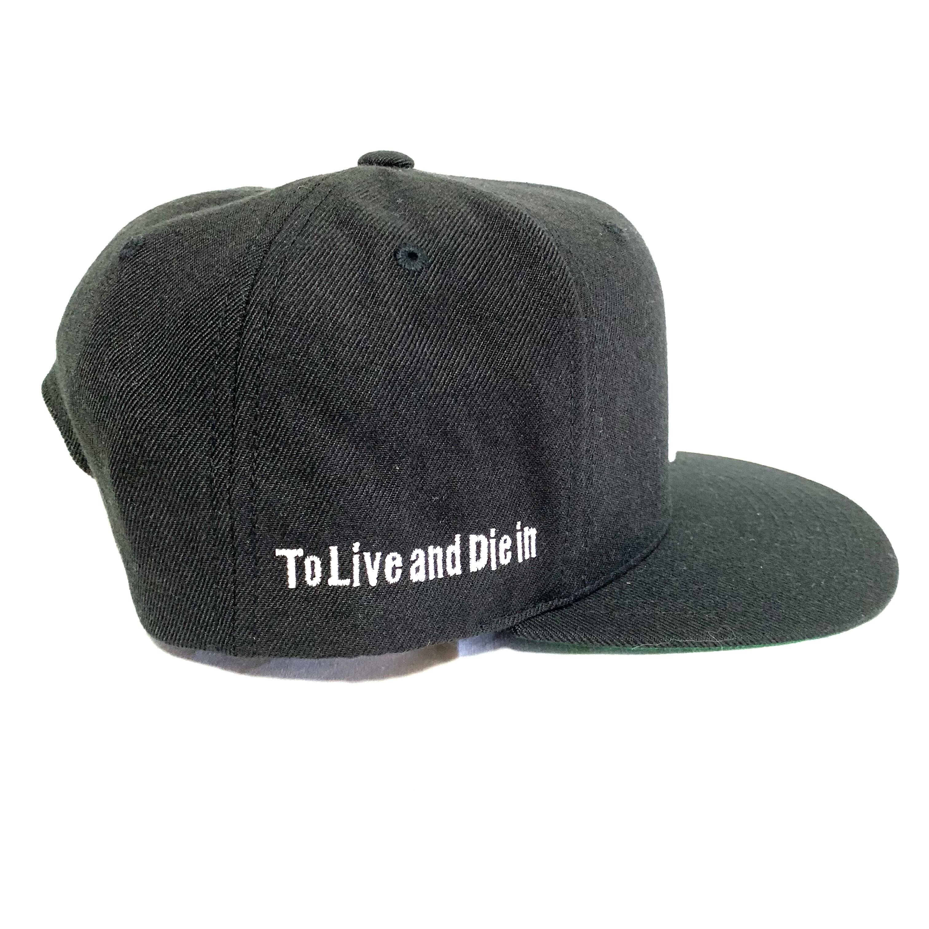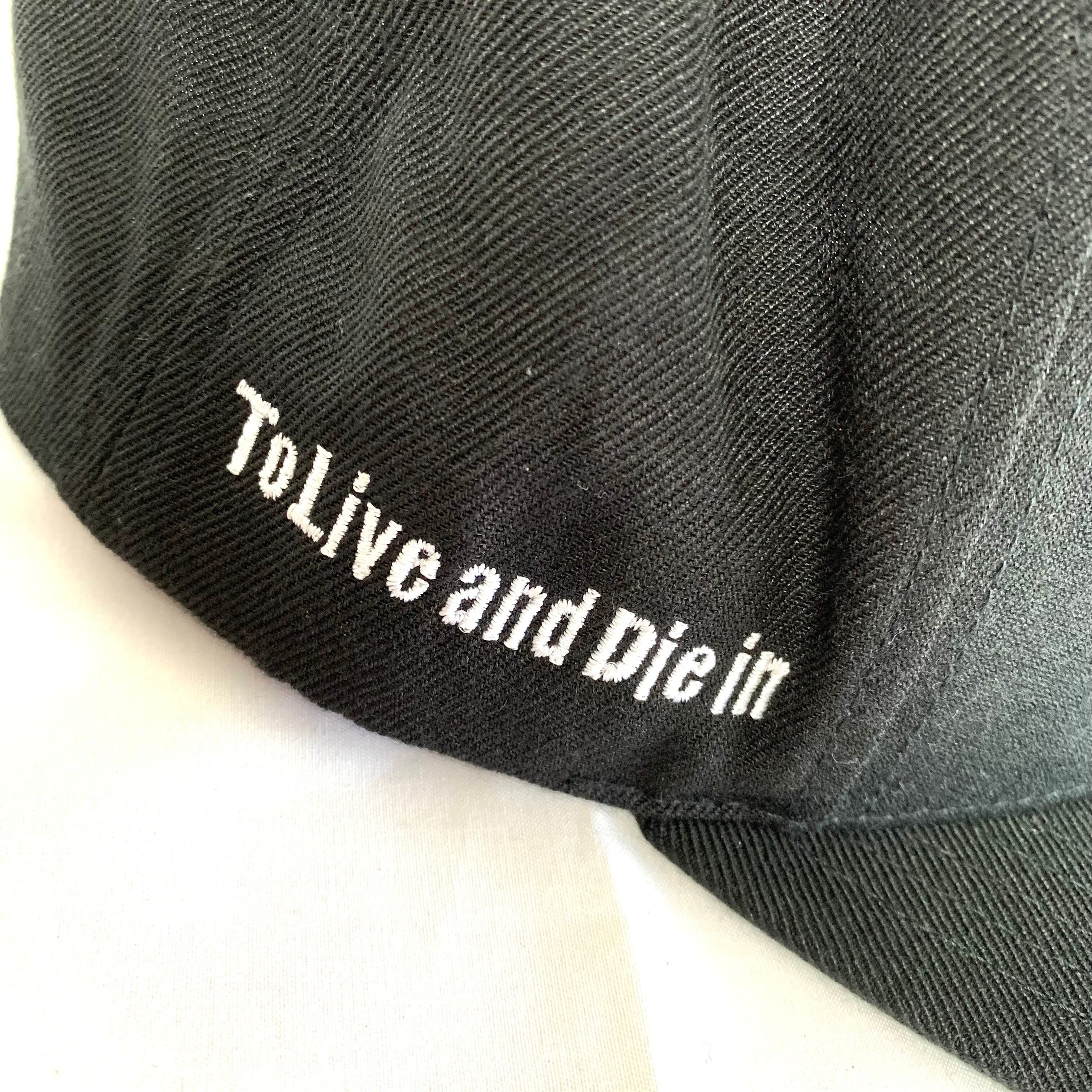 ラッパー・2Pacの楽曲「To Live and Die in L.A.」をモチーフにして、ロサンゼルス・ドジャースのロゴが逆さまに刺繍されています。